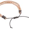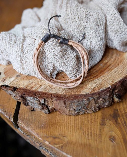 Das hochwertige gegerbte Büffelleder von „Hedda“ ist einerseits robust, um Alltagsstrapazen problemlos standhalten zu können und andererseits schmiegt es sich angenehm ums das Handgelenk. Verschiedene Bänder wechseln sich ab und ergänzen sich perfekt auf deinem Handgelenk.“Hedda“ – einfach Retro, einfach natürlich!