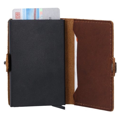 Besonders praktisch: Das integrierte Metall-Etui mit Ausziehmechanismus ermöglicht schnellen Zugriff auf Deine Karten, während die RFID-Schutztechnologie sensible Daten vor ungewolltem Auslesen bewahrt. So sind Deine Karten immer sicher aufbewahrt!