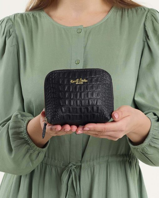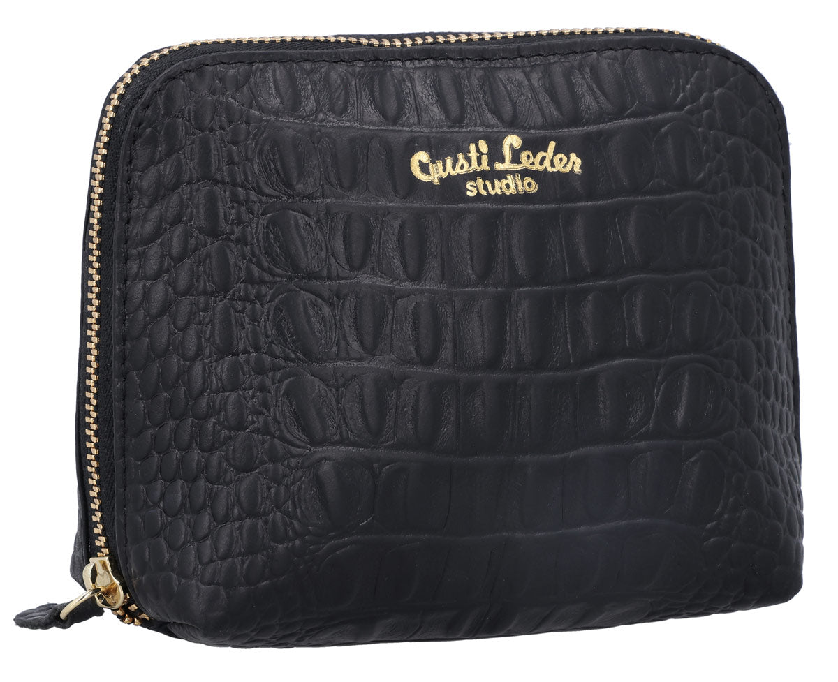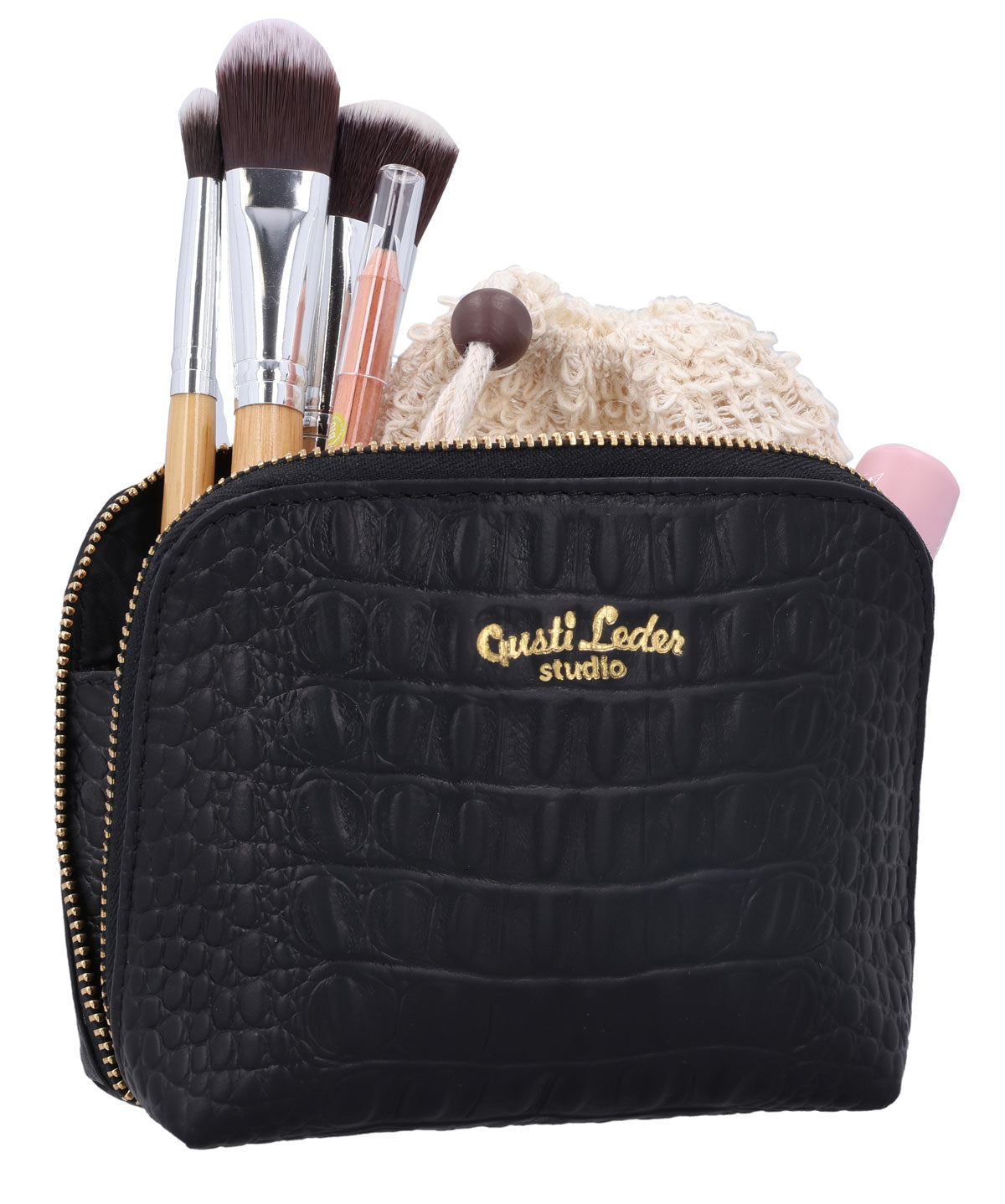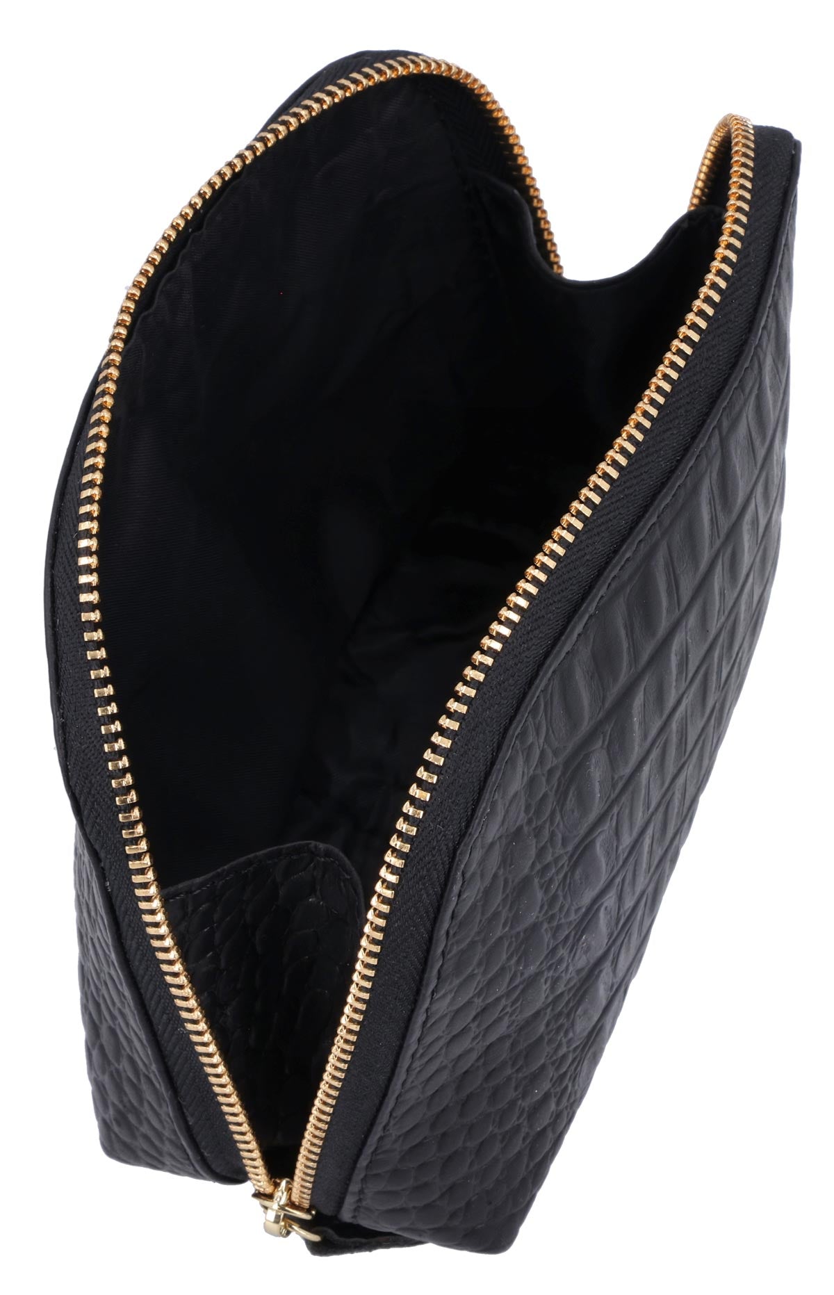 Verlierst Du oft den Überblick in Deiner Tasche und suchst ewig nach Deiner Wimperntusche oder anderen Kleinigkeiten? Dann ist „Leo“ genau das Richtige für Dich! Dieses wunderschöne, kleine Täschchen sorgt für Ordnung in den unendlichen Tiefen Deiner Tasche und überzeugt mit seinem stilvollen Design. Gefertigt aus hochwertigem schwarzem Rindsleder, strahlt es eine edle Eleganz aus, die sich mühelos in Deinen Alltag einfügt. Der umlaufende Akzent-Reißverschluss betont die klassische Optik und macht „Leo“ zu einem stilvollen Begleiter – dezent, aber dennoch ein Blickfang.