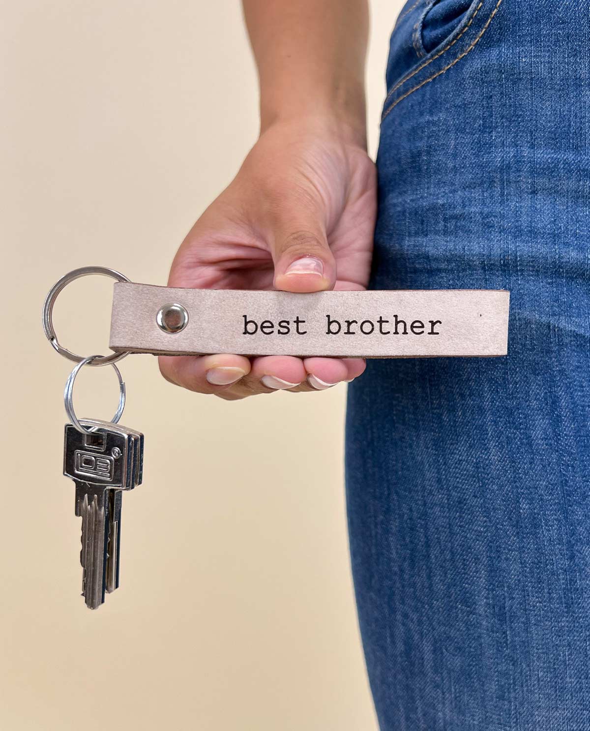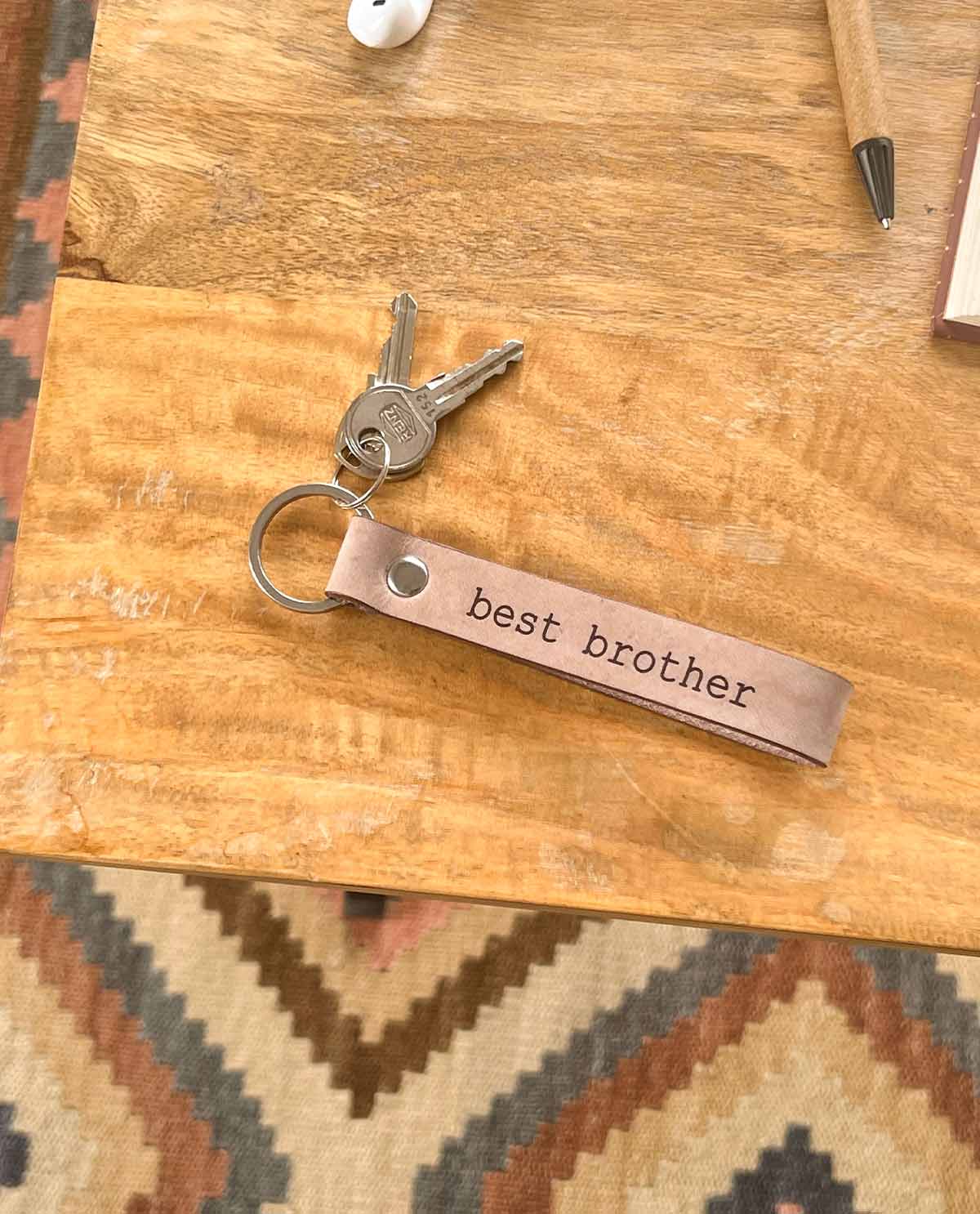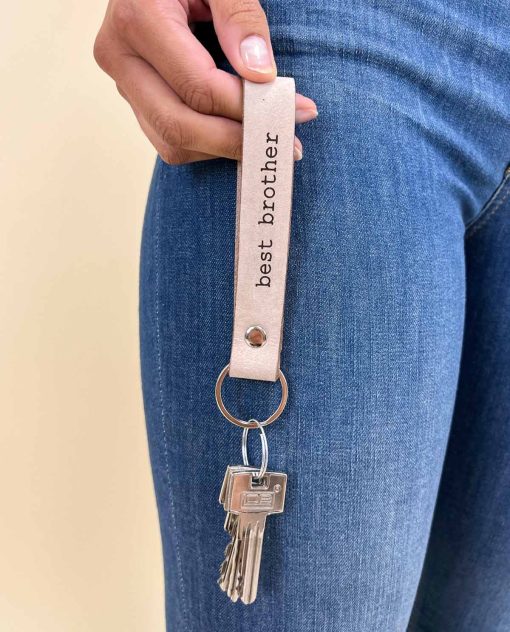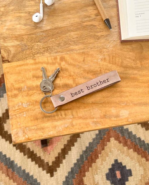 Der elegante Schlüsselanhänger „Shelton“ ist in vielen verschiedenen Farben erhältlich – garantiert ist auch Deine Lieblingsfarbe dabei. Am Schlüsselring kannst Du beliebig viele Schlüssel und Karabiner befestigen. Durch die vorhandene Gravur erhält der Schlüsselanhänger eine ganz persönliche Note, sodass Dein Bruder nicht nur ein praktisches, sondern auch ein einzigartiges Geschenk bekommt. Ein ideales Accessoire für jedes Handtaschen- oder Rucksack-Innere!