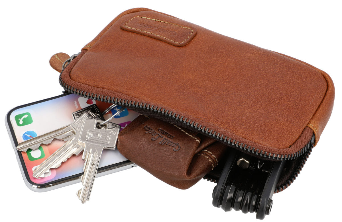 Mit der praktischen und stilvollen Schlüsseltasche „Alberto C.“ bewahrst Du Deine Schlüssel sicher auf, ohne dass sie in Deiner Tasche verloren gehen. Dank der großzügigen Passform bietet sie genügend Platz für weitere Essentials wie Deine Monatskarte, Kleingeld oder sogar Dein Handy. Gleichzeitig bleibt sie kompakt genug, um problemlos in jede Jackentasche, Handtasche oder Rucksack zu passen. Das zeitlose Design und das weiche, aber robuste Büffelleder verleihen „Alberto C.“ eine elegante Vintage-Note und machen sie zu einem praktischen Begleiter für den Alltag.