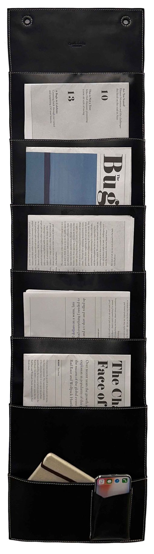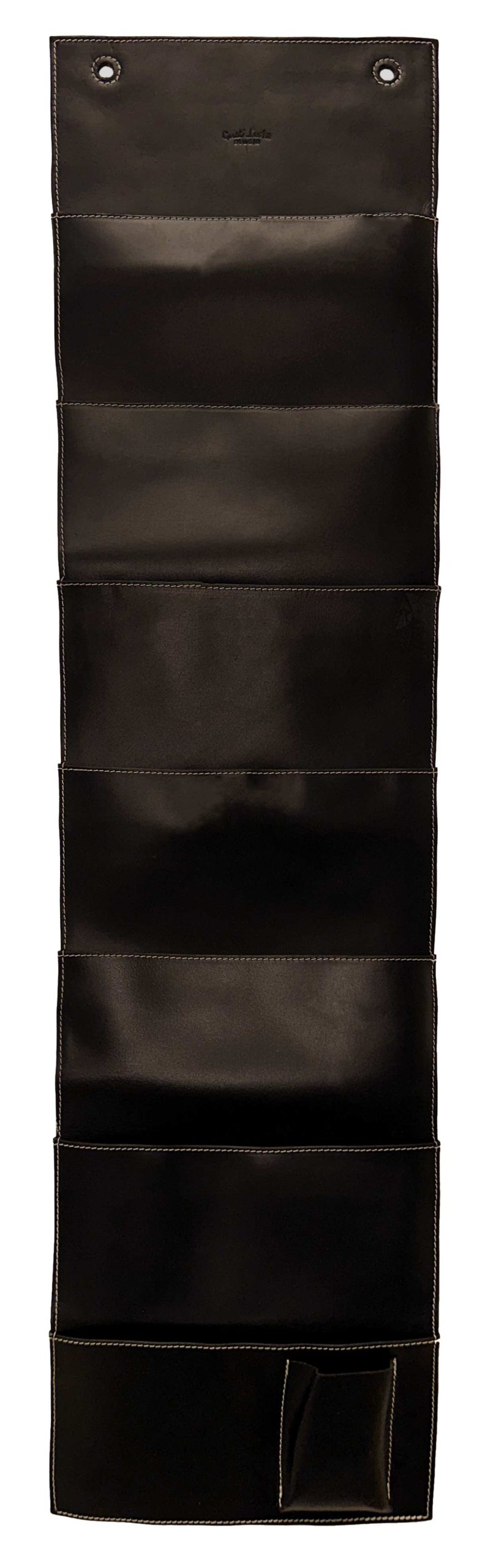 „Linnea“ hat insgesamt 7 Fächer für Dokumente und Magazine. Die Fächer sind großzügig gewählt, weshalb auch mehrere Zeitschriften in ein Fach passen. Die kontrastierten Nähte vollenden das Design. Zusätzlich hast du noch ein kleines Seitenfach am unteren Ende des Organizers, welches du für Stifte und vieles mehr benutzen kannst. Praktischerweise wurde „Linnea“ bereits mit zwei Löchern versehen, sodass ein kinderleichtes Anbringen garantiert ist. Unordentliche Stapel auf dem Tisch waren gestern, klasse Design an der Wand ist heute – mit „Linnea“!