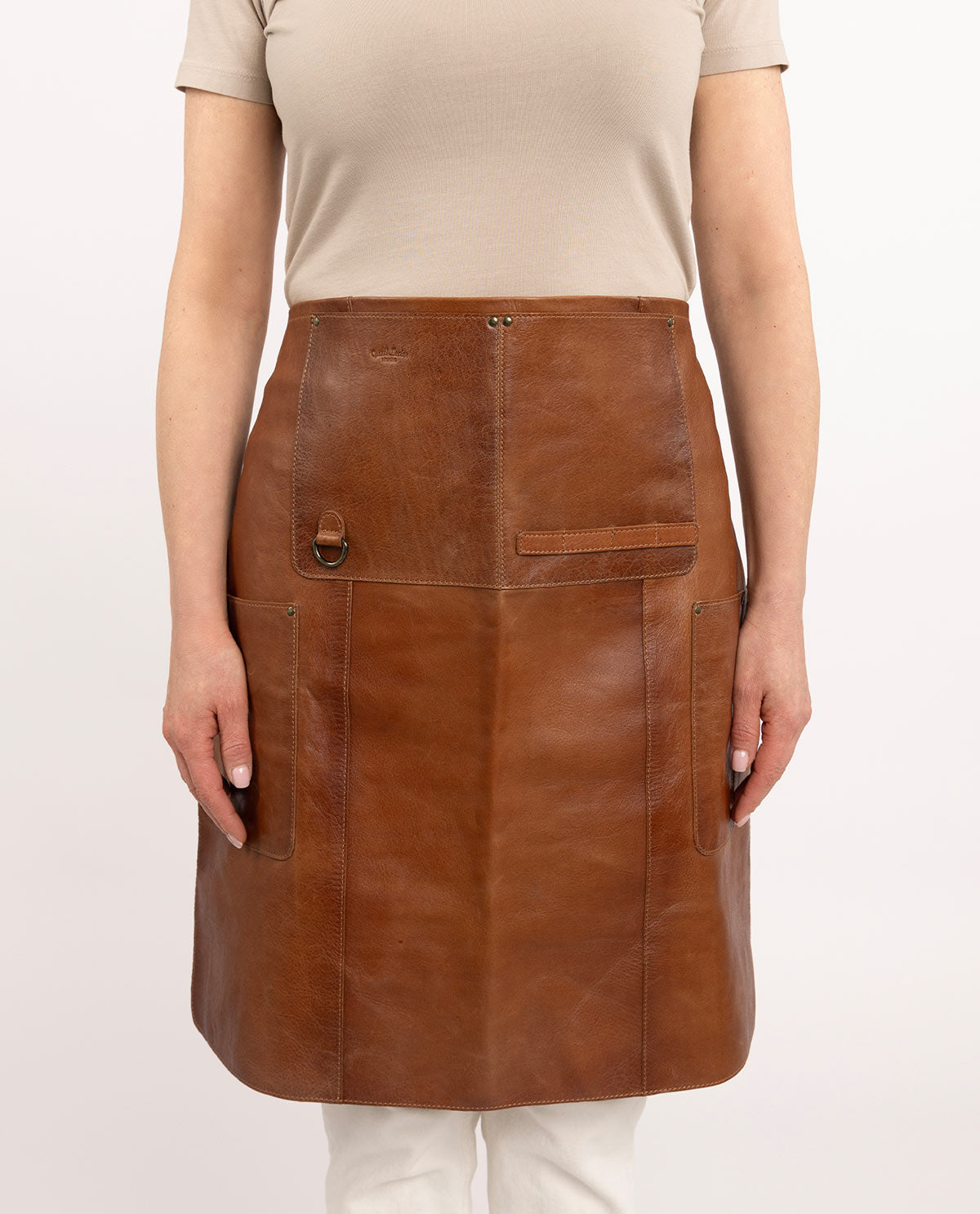 Die „Marica“ Friseurschütze ist der ideale Begleiter für alle, die Wert auf Funktionalität und Stil im Arbeitsalltag legen. Gefertigt aus hochwertigem echtem braunem Leder, kombiniert dieser Schütze robuste Materialien mit einem eleganten Design. Die langen Lederseitenriemen ermöglichen es Dir, die Schürze bequem um Deine Taille zu binden, wodurch Du sie perfekt an Deine Körperform anpassen kannst. So hast Du immer einen sicheren Sitz, ganz gleich, wie intensiv Dein Arbeitstag ist. Die „Marica“ schützt zudem Deine Kleidung zuverlässig, besonders bei Tätigkeiten wie dem Haare färben oder anderen Friseurarbeiten, bei denen Flecken leicht entstehen können.
