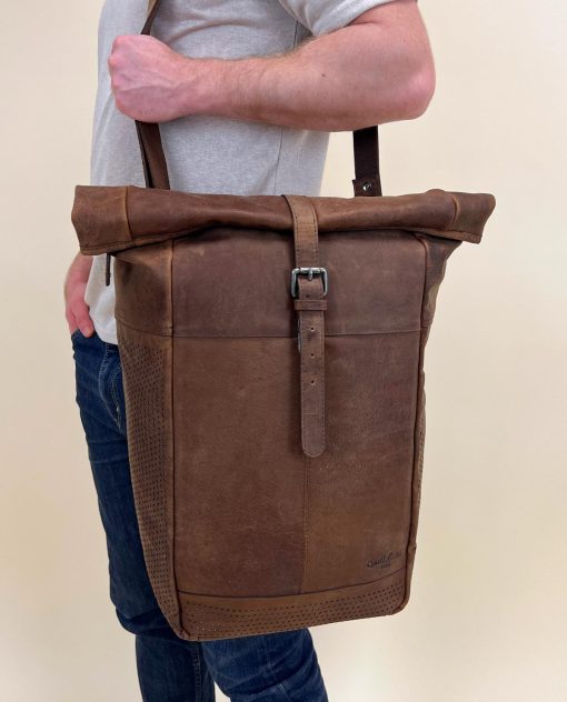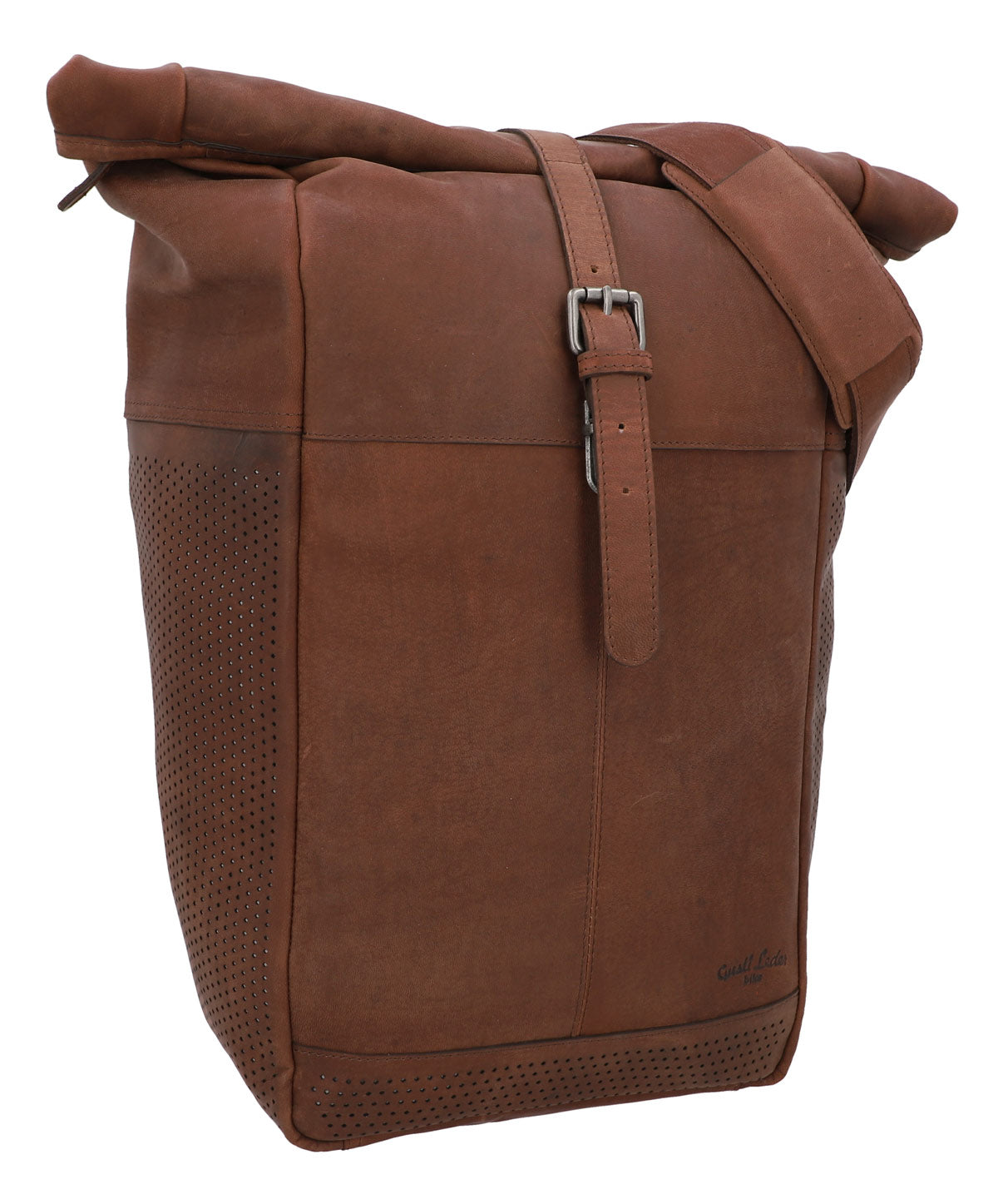 Eins vorweg – „Amets T.“ ist ein echtes Platzwunder – 15 Liter Innenraum. Das bedeutet, dass nebst A4 Blöcken, Bücher, Trinkflasche und Handy du selbst noch genug Platz für ein 15 Zoll Laptop hast – großem Innenfach sei Dank. Jetzt nur noch schnell Rolltop einrollen und mit der Gürtelschnalle zumachen, Schnappverschluss im Gepäckträger verankern und los! „Amets T.“ passt sich sowohl funktional aber vor allem optisch an jedes Rad an. Heute vielleicht lieber zu Fuß? Kein Problem – der passende Schultergurt aus Leder mit zwei Metallhaken wird mitgeliefert und macht aus „Amets T.“ die perfekte Rolltop Tasche für unterwegs. Abgerundet wird dies mit verstellbarer Gürtelschnalle und Metall Steckverschluss vorne sowie einem Reißverschluss oben. So sind alle deine Habseligkeiten vor Wind, Wetter und Feuchtigkeit optimal geschützt. Aufgrund des natürlichen Herstellungsprozesses kann es bei unseren Gusti Leder Nature Lieblingen zu Farbabweichungen kommen.