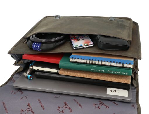 Ohne Zweifel, „Matthew S.“ hat all das, was Du von einer Leder-Umhängetasche erwartest: der klassische Look kombiniert mit einem unaufdringlichen Finish. Und dann noch diese praktische Gepäckträgerhalterung! So erweist sich „Matthew S.“ als gleichermaßen passend für einen Casual-Work-Day wie auch für das anstehende große Businessmeeting, zu dem Du noch auf die Schnelle hinradelst, weil Du in der Stadt schneller nicht von A nach B kommst. Und wer jetzt noch immer nicht von „Matthew S.“ überzeugt ist, den begeistert diese Gepäckträgertasche im klassischen Aktentaschenlook aus hochwertig verarbeitetem Büffelleder spätestens durch das enorme und großzügige Platzangebot – dank der zahlreichen Fächer.