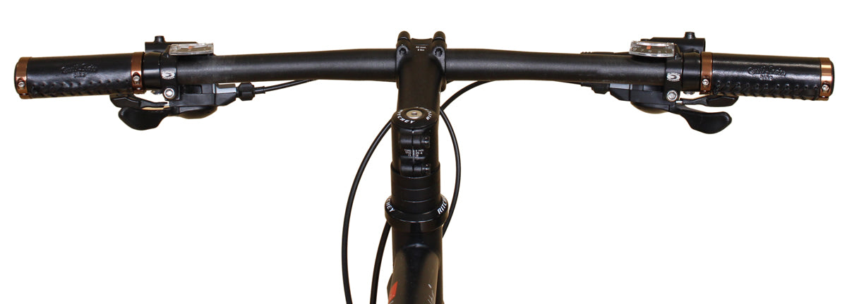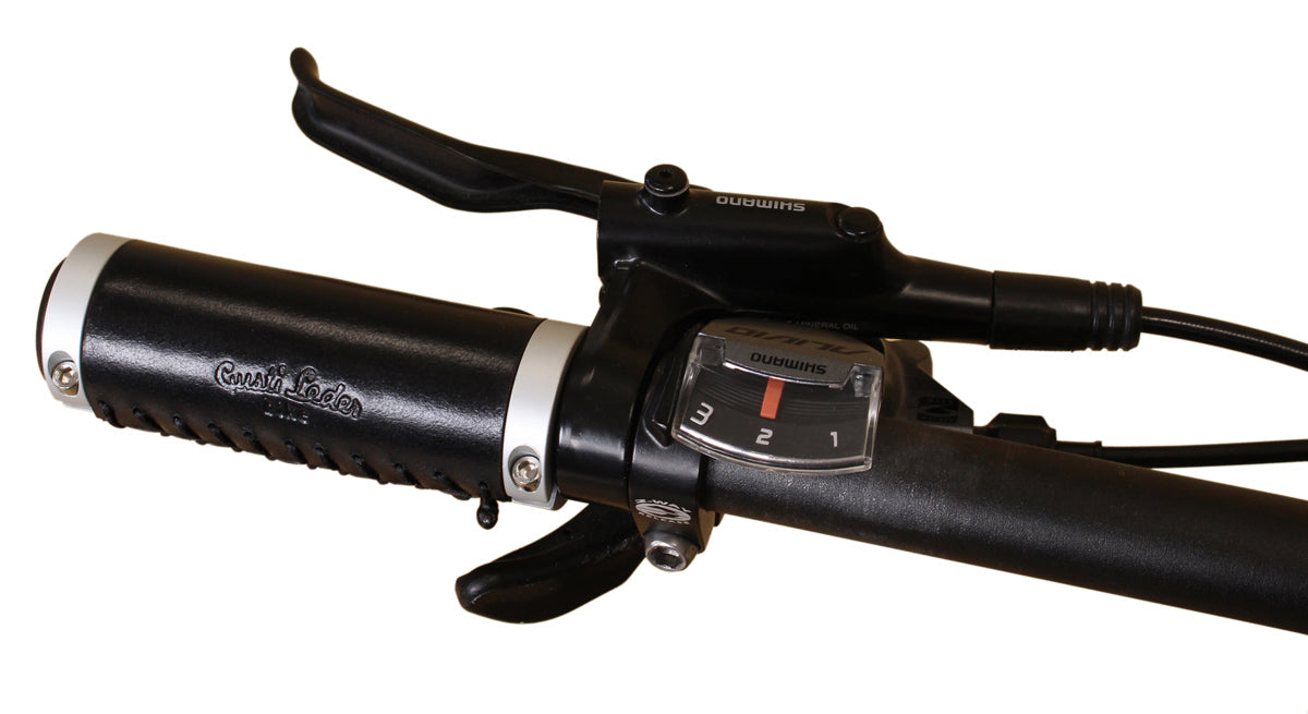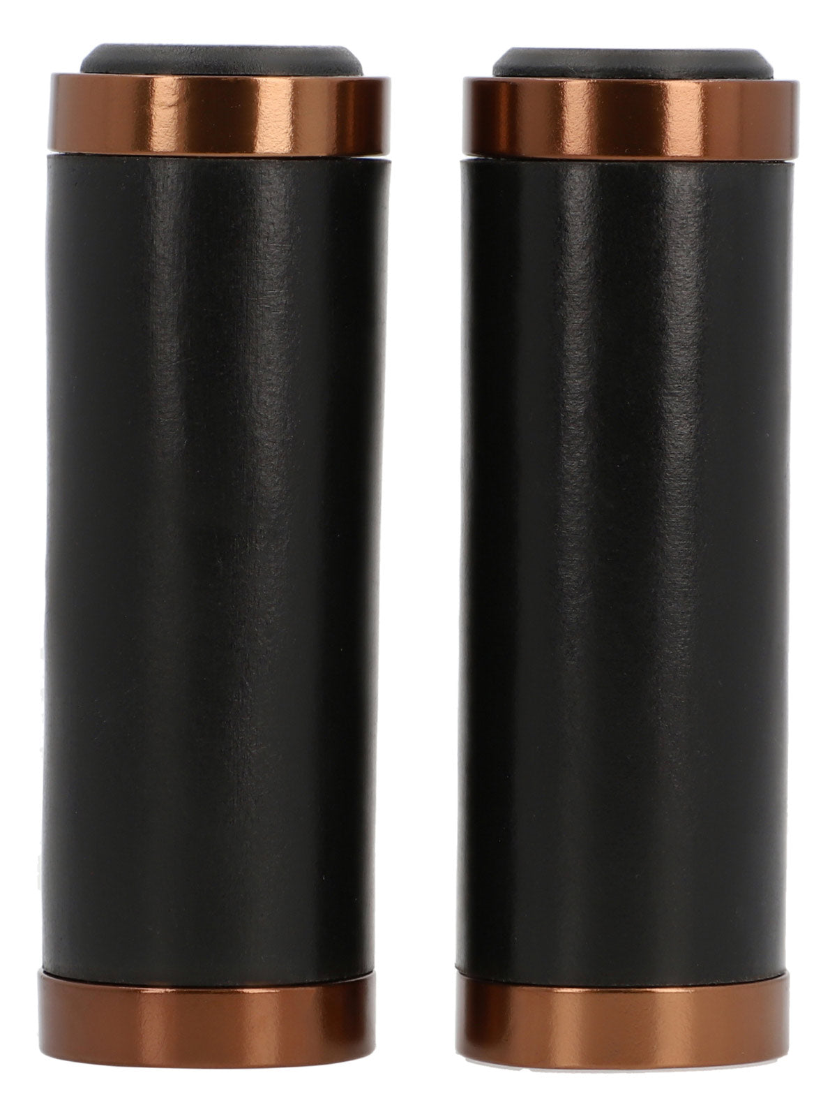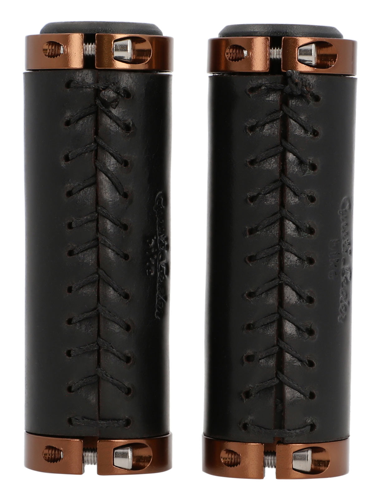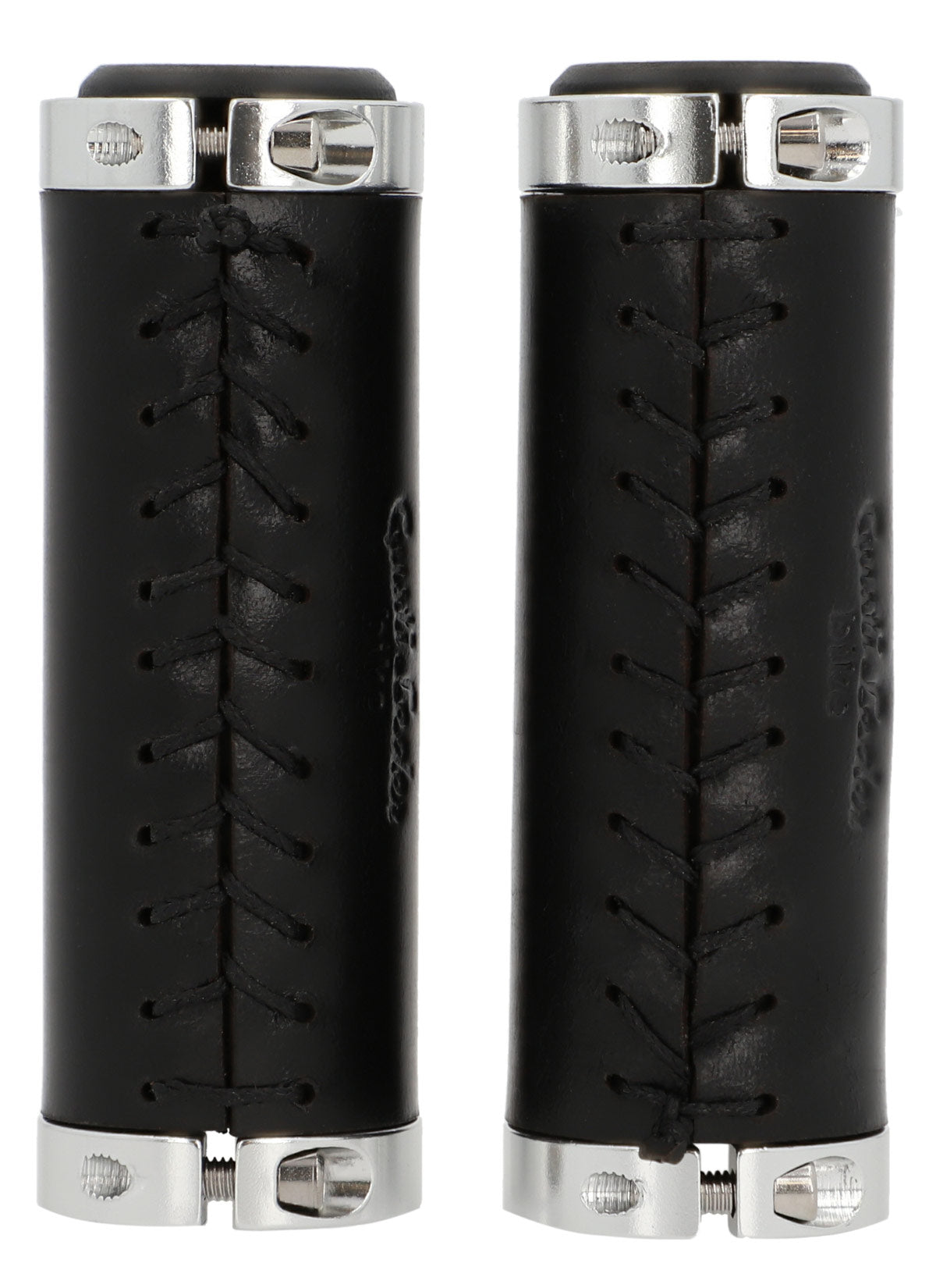 Die „Carlos G.“ Fahrradgriffe bestechen mit ihrem Materialmix aus verschieden farbigem Aluminium und 100% Büffelleder und bieten darüber hinaus einen hervorragenden Grip und sorgen auf diese Weise für ein konstant-gutes Lenkverhalten, egal in welchem Gelände.Die Ziernähte verleihen den Lenkergriffen derweil einen lässigen Retrocharme. Das Leder passt sich nach einer gewisse Einfahrtszeit ideal an die Anatomie deiner Hände an, federt Stöße und Vibrationen während der Fahrt exzellent ab und erhöht so die Griffsicherheit noch zusätzlich. So hast du optimale Sicherheit und Kontrolle im Straßenverkehr. Komfort der Funktionalität und Stil vereint!