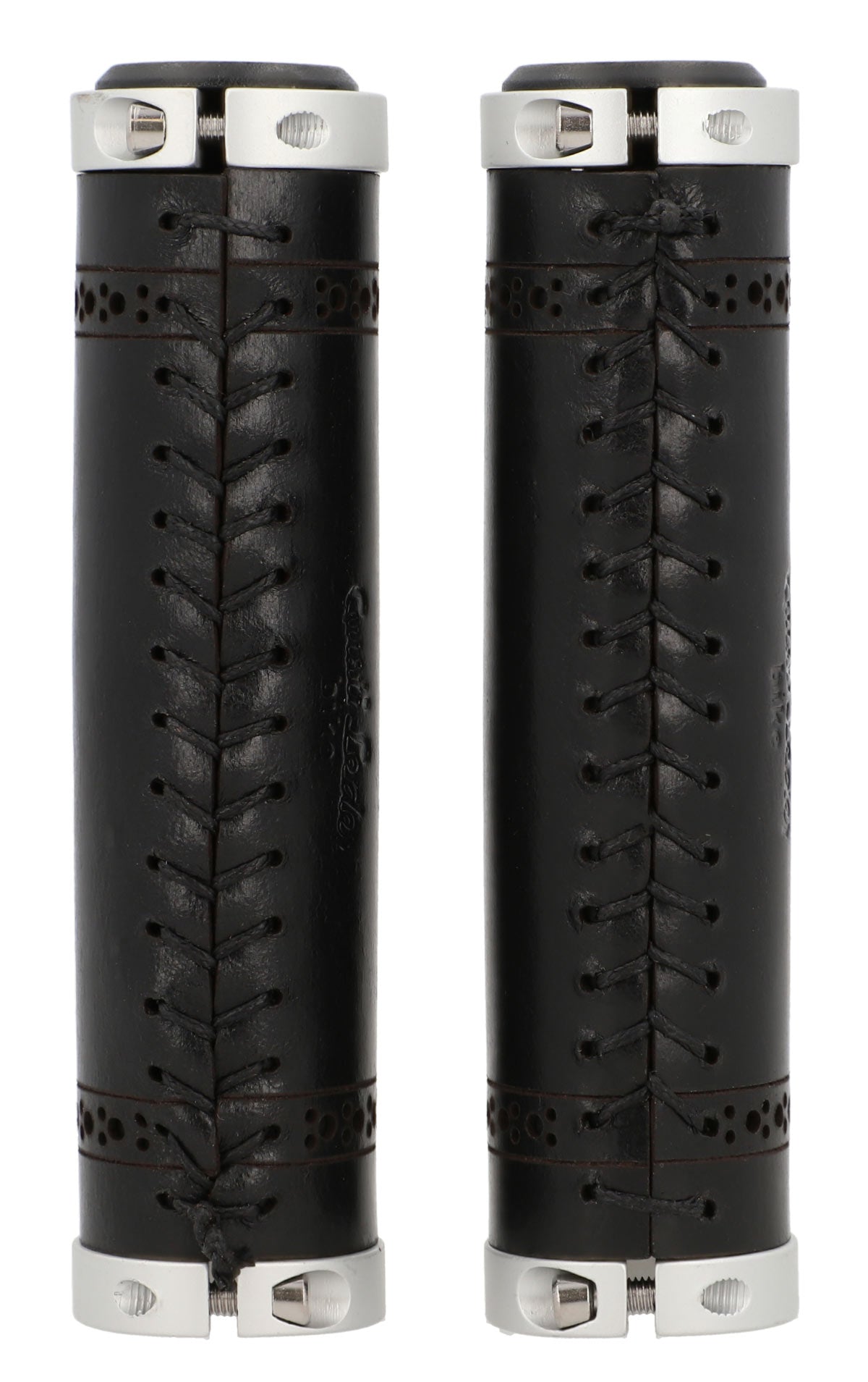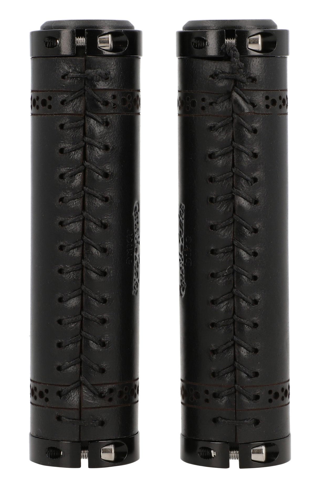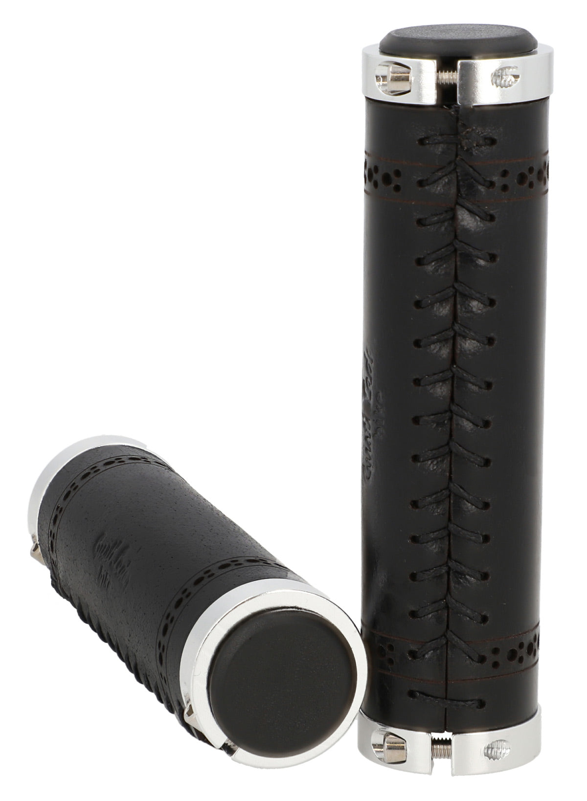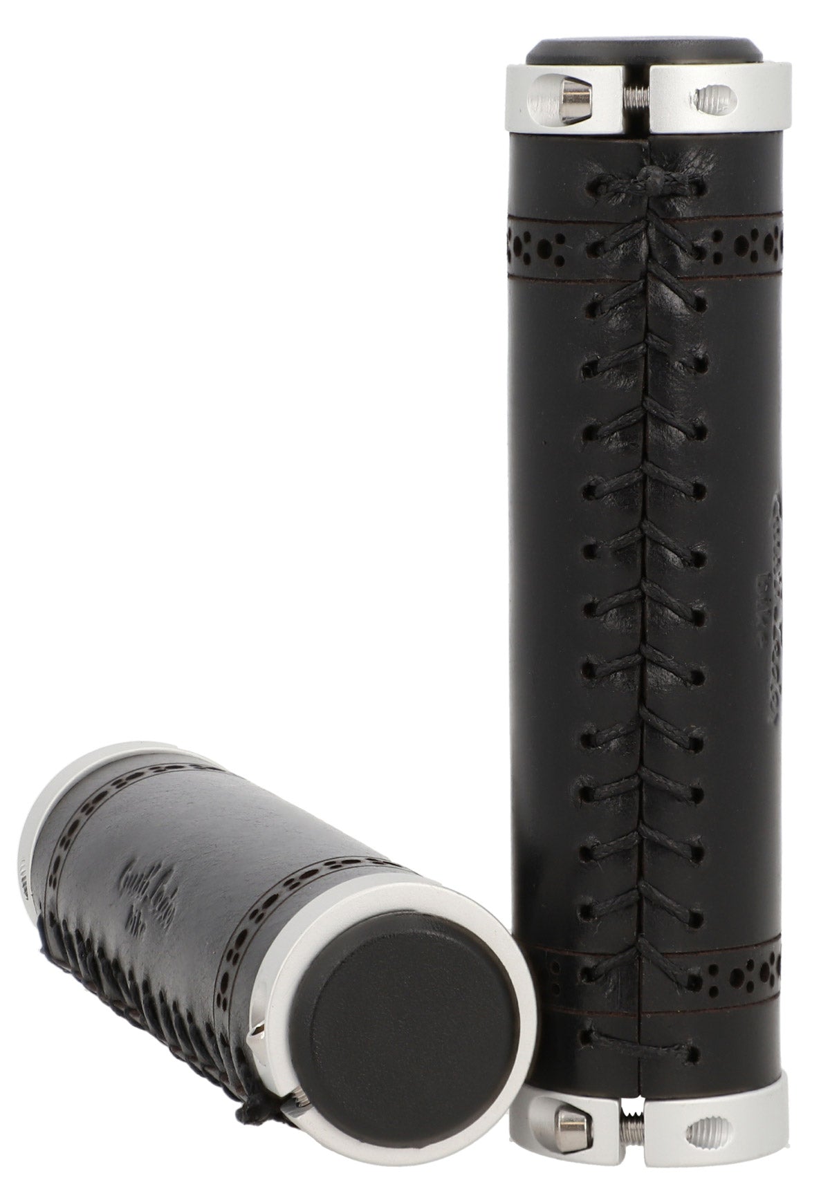 Die „Sonny C.“ Fahrradgriffe bestechen mit ihrem Materialmix aus verschiedenfarbigem Aluminium und 100 % Echtleder und bieten darüber hinaus ein konstant gutes und vor allem gleichbleibendes Lenkverhalten, egal auf welchem Untergrund. Das robuste Leder passt sich nach einer gewissen Zeit ideal an die Anatomie deiner Hände an, federt Stöße und Vibrationen während der Fahrt exzellent ab und erhöht so die Griffsicherheit noch zusätzlich. Für die optimale Kontrolle im Straßenverkehr.