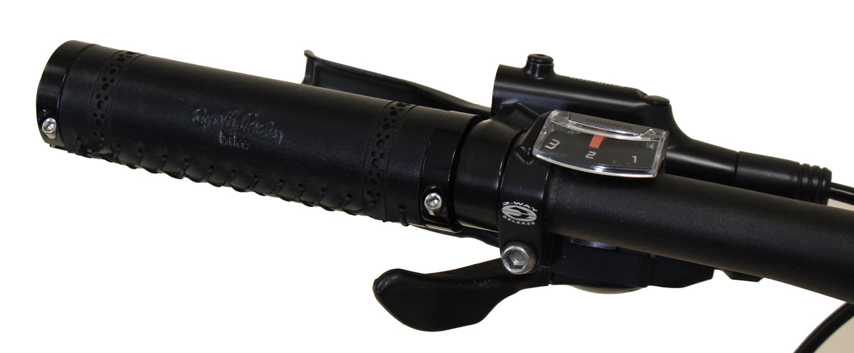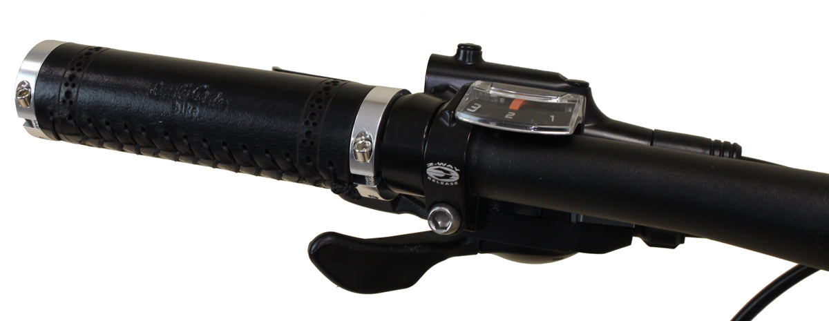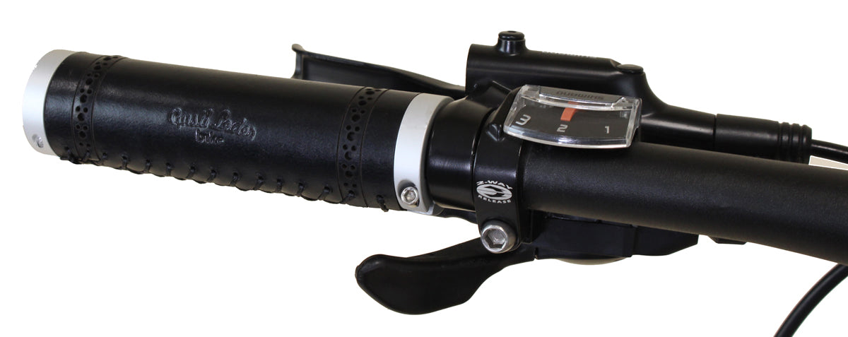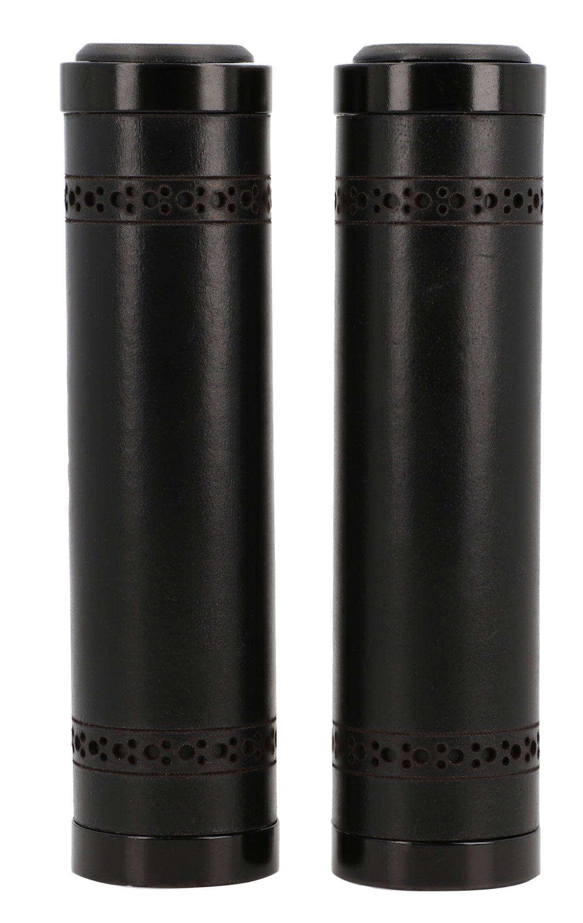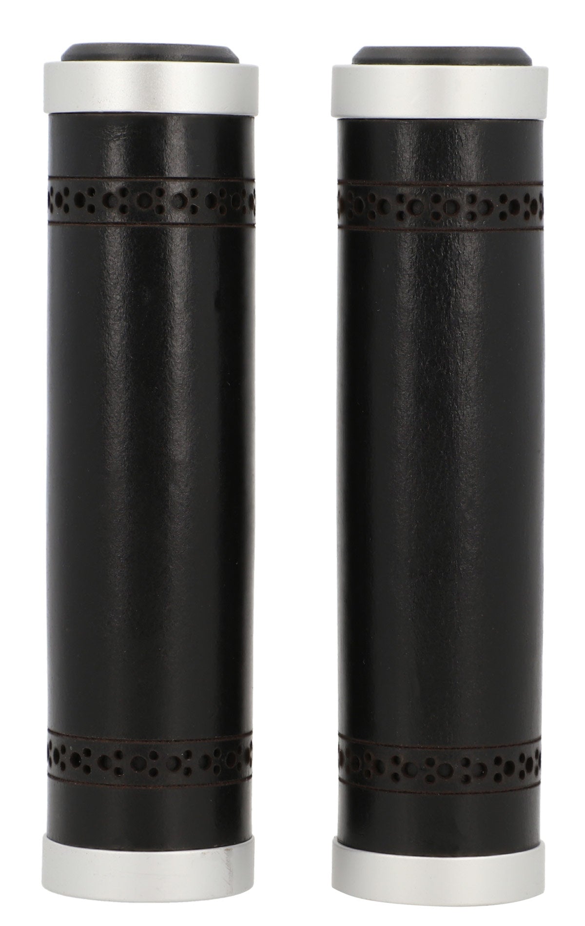 Die „Sonny C.“ Fahrradgriffe bestechen mit ihrem Materialmix aus verschiedenfarbigem Aluminium und 100 % Echtleder und bieten darüber hinaus ein konstant gutes und vor allem gleichbleibendes Lenkverhalten, egal auf welchem Untergrund. Das robuste Leder passt sich nach einer gewissen Zeit ideal an die Anatomie deiner Hände an, federt Stöße und Vibrationen während der Fahrt exzellent ab und erhöht so die Griffsicherheit noch zusätzlich. Für die optimale Kontrolle im Straßenverkehr.