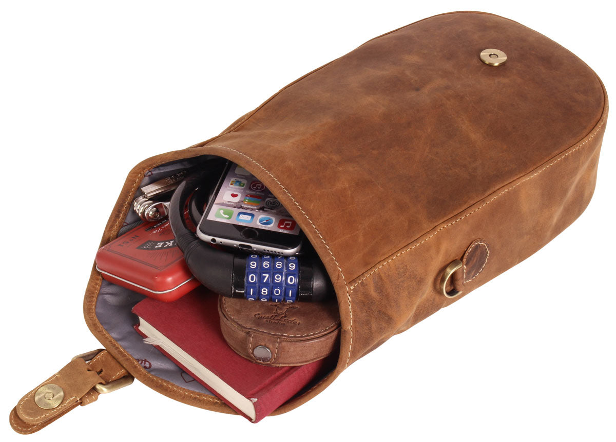 Aus robustem und hochwertig verarbeitetem Büffelleder überzeugt „Félicia B.“ nicht nur mit seinem Design als kleine Kuriertasche für den Alltag, sondern lässt sich dank eines integrierten -Platte auf der Rückseite der Tasche im Handumdrehen an deinem Lenker befestigen. Die Fahrradtasche verfügt im Innern über ein Hauptfach, welches genügend Platz für dein Notizbuch, Geldbeutel, Handy, Fahrradschloss uvm.verfügt. Damit auch nichts herausfallen kann, wird mittels Dornschnallenmagnetverschluss abgeschlossen.