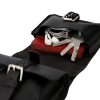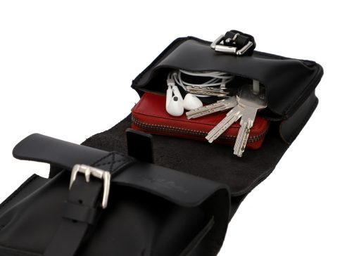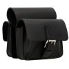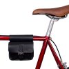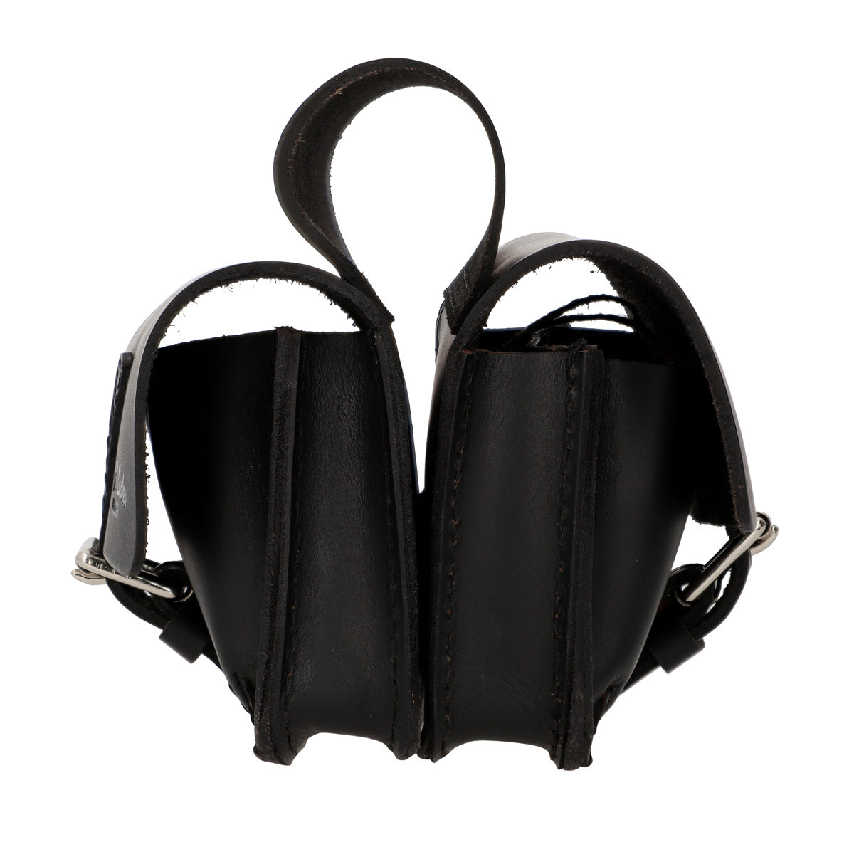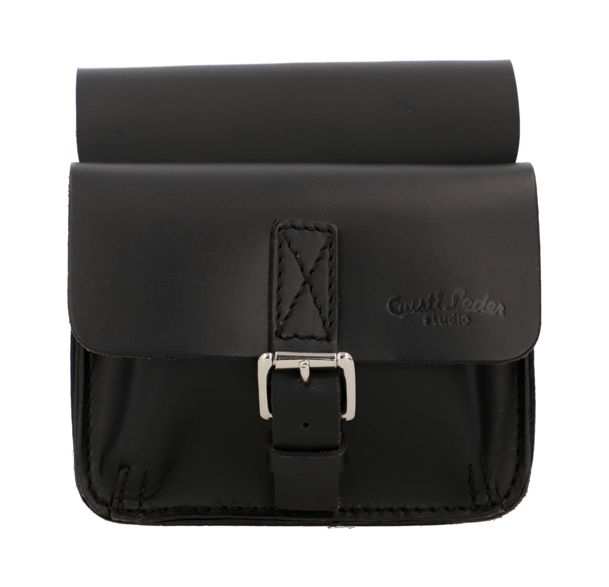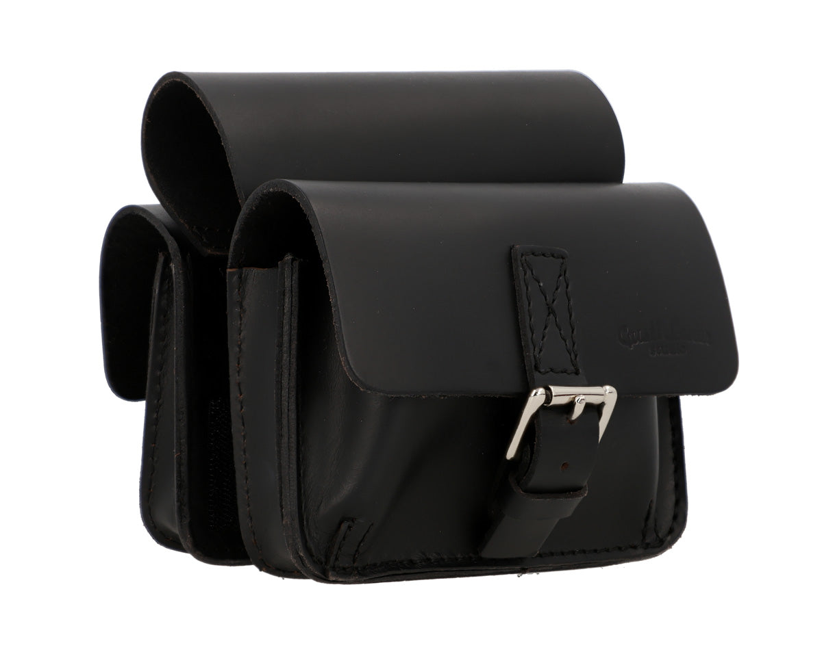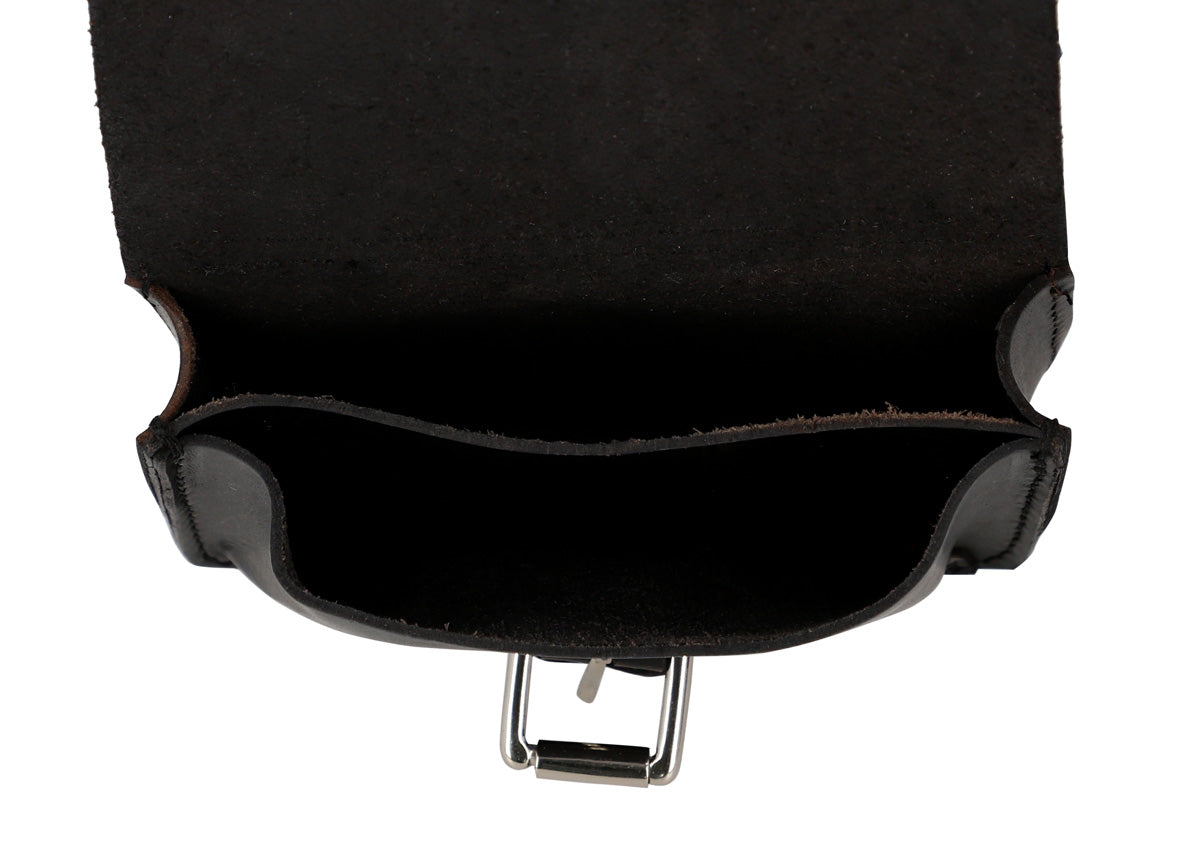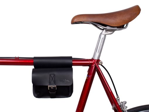 Jede Seite verfügt über ein geräumiges Hauptfach, in dem Werkzeug, Schloss & Schlüssel sicher verstaut werden können. Der Dornschnallenverschluss sorgt dafür, dass nichts herausfallen kann, selbst auf unebenen Strecken. Dank der breiten Lederlasche, die auf der Querstange aufliegt, bleibt die Tasche stabil an ihrem Platz. Zusätzlich sorgt ein Klettverschluss auf der Rückseite dafür, dass beide Taschen miteinander verbunden bleiben und nicht verrutschen. Das hochwertige Büffelleder verleiht der Tasche Form und Stabilität und macht sie zu einem stilvollen Hingucker an Deinem Fahrrad.