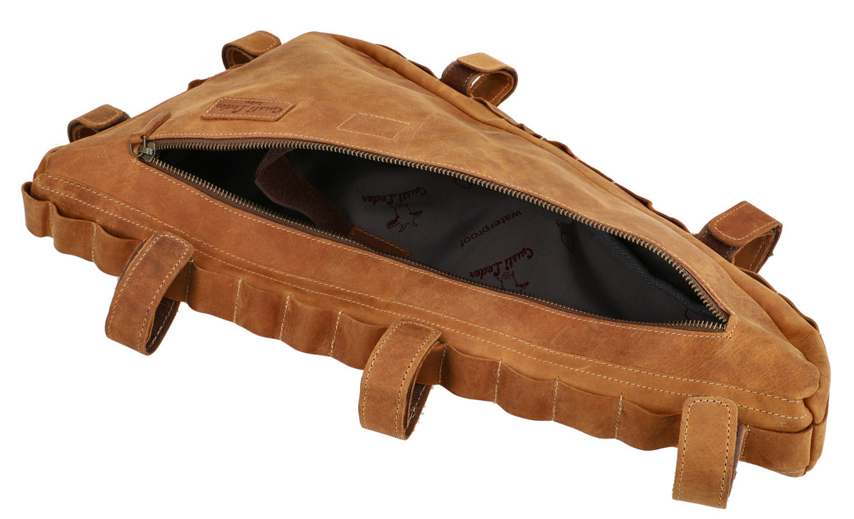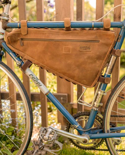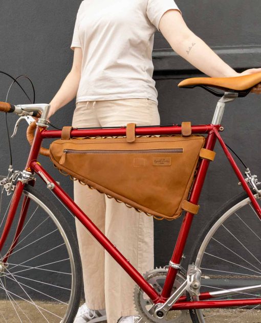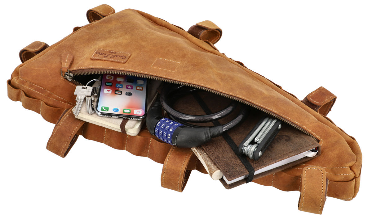 Du suchst ein stilvolles Vintage-Accessoire für Dein Fahrrad? Dann ist „Roger V.“ die perfekte Wahl! Diese funktionale Rahmentasche bietet Dir nicht nur zusätzlichen Stauraum, sondern überzeugt auch mit ihrem hochwertigen Büffelleder und ihrem zeitlosen Retro-Charme. Dank des wasserabweisenden Materials bleiben Deine Habseligkeiten auch bei Regen trocken. Egal, ob für den täglichen Weg ins Büro oder für längere Radtouren – „Roger V.“ kombiniert Funktionalität mit Stil und sorgt dafür, dass Du stets bestens ausgestattet bist.