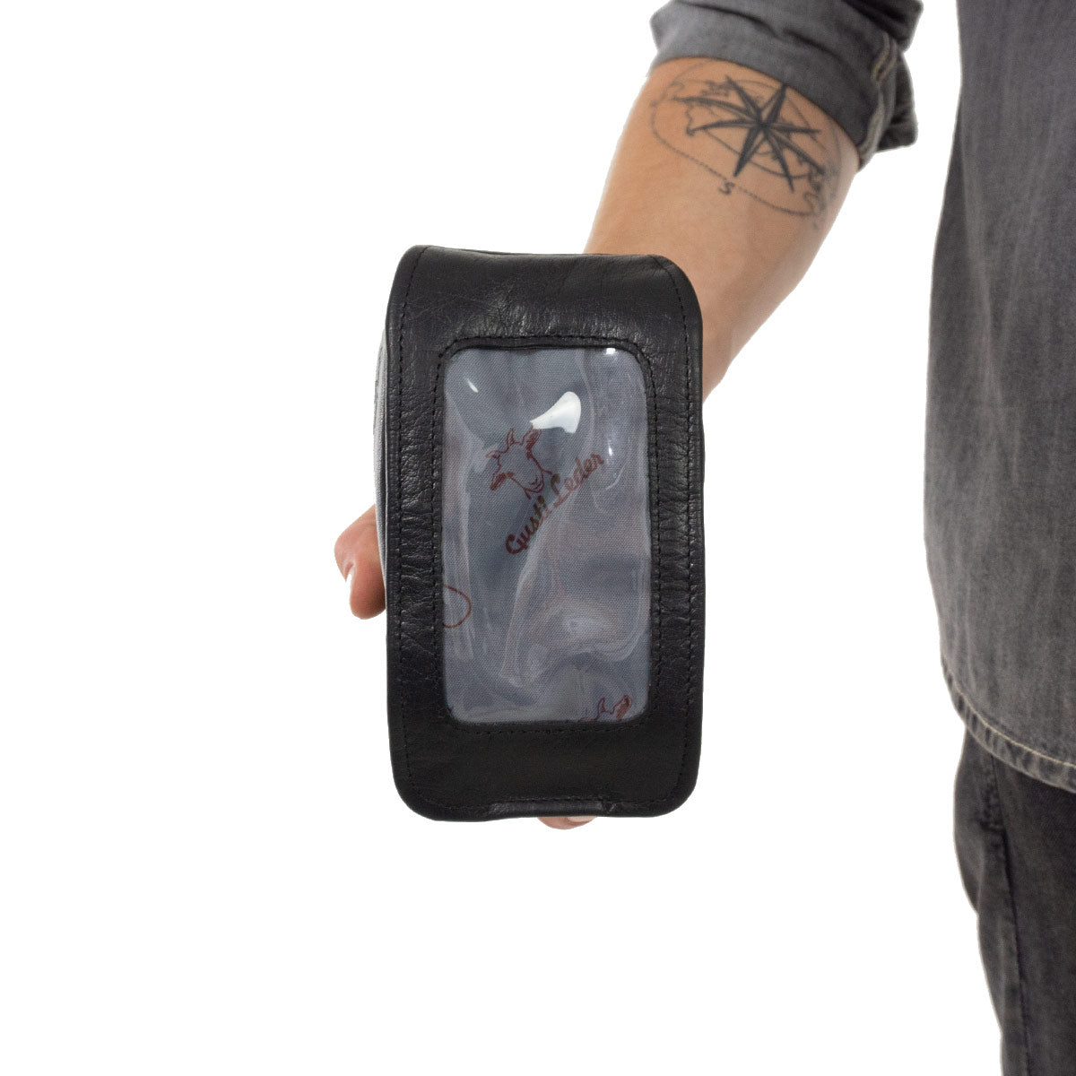Diese praktische Fahrradtasche aus Büffelleder im hochwertigen Vintage-Look überzeugt nicht nur durch ihre kompakte Form, sondern lässt sich dank eines integrierten -Platte auf der Rückseite der Tasche im Handumdrehen an Deinem Lenker befestigen. So hast du auch noch hoch zu Ross dein Handy sowie kleines Werkzeug oder auch ein First Aid Kit sofort zur Hand. Dank des Sichtfensters, kannst du nun bequem dein Handy als Navigation nutzen und musst dich nicht mehr zwischen Komfort und Funktionalität entscheiden.