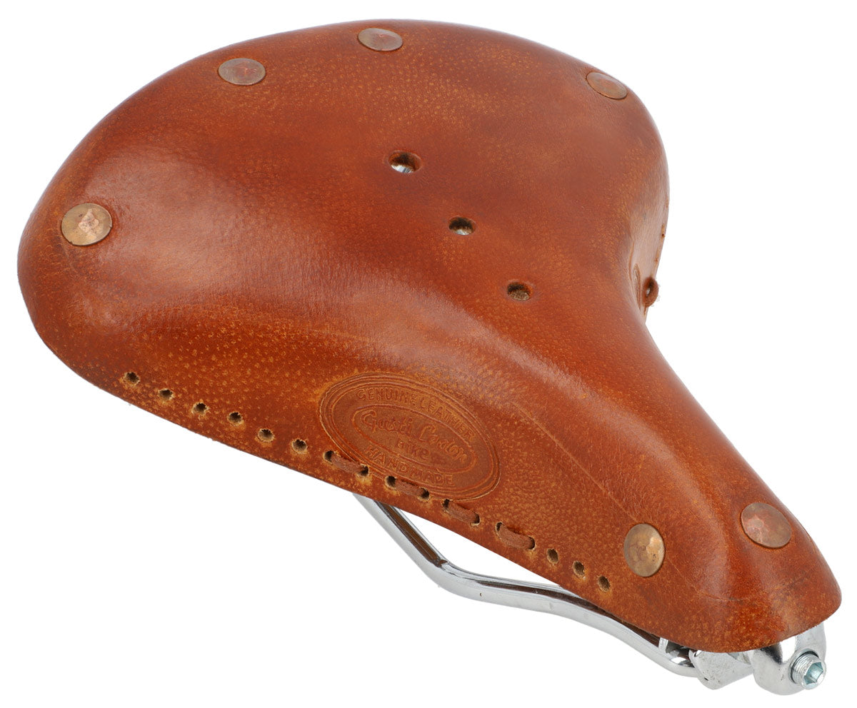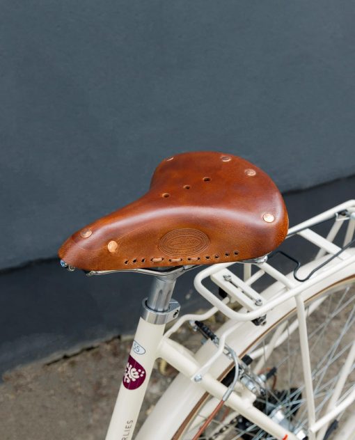 Auf der Suche nach einem stilvollen Retrosattel, der sich perfekt an Dein Fixie oder Hollandrad anpasst? Dann ist „Elsy J.“ genau die richtige Wahl! Ihr elegantes Design aus hochwertigem Büffelleder verleiht Deinem Fahrrad einen einzigartigen Look. Umlaufend mit farblich auffallenden Nieten beschlagen, sorgt sie für das gewisse Extra an Stil. Zudem kannst Du dank der Halterösen eine Satteltasche anbringen – perfekt für alle, die auf ihren Radtouren noch mehr Freiheit genießen möchten.