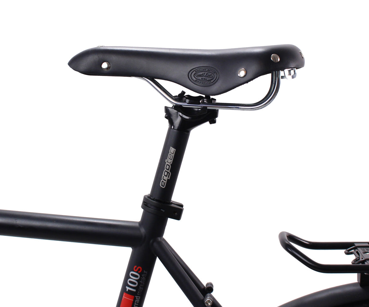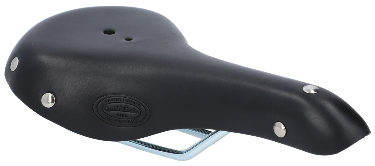 „Louison B.“ ist aus widerstandsfähigem Rindsleder gefertigt und mit robusten Nieten verstärkt, um Langlebigkeit und Stabilität zu gewährleisten. Dank der praktischen Halterösen kannst Du zudem eine Satteltasche anbringen – ideal für zusätzlichen Stauraum auf Deinen Touren. Optisch überzeugt der Sattel mit einem eleganten Gusti-Logo an der Seite. Aufgrund seiner Materialbeschaffenheit benötigt dieser Vintage-Sattel eine kurze Einfahrzeit, passt sich dann aber perfekt an Deine Sitzposition an und bietet Dir langfristig höchsten Sitzkomfort. Mit regelmäßiger Pflege bleibt „Louison B.“ Dein treuer Begleiter für viele Jahre. Verwende unser Natural Wax Lederpflegeprodukt für den besten Schutz!