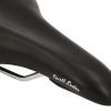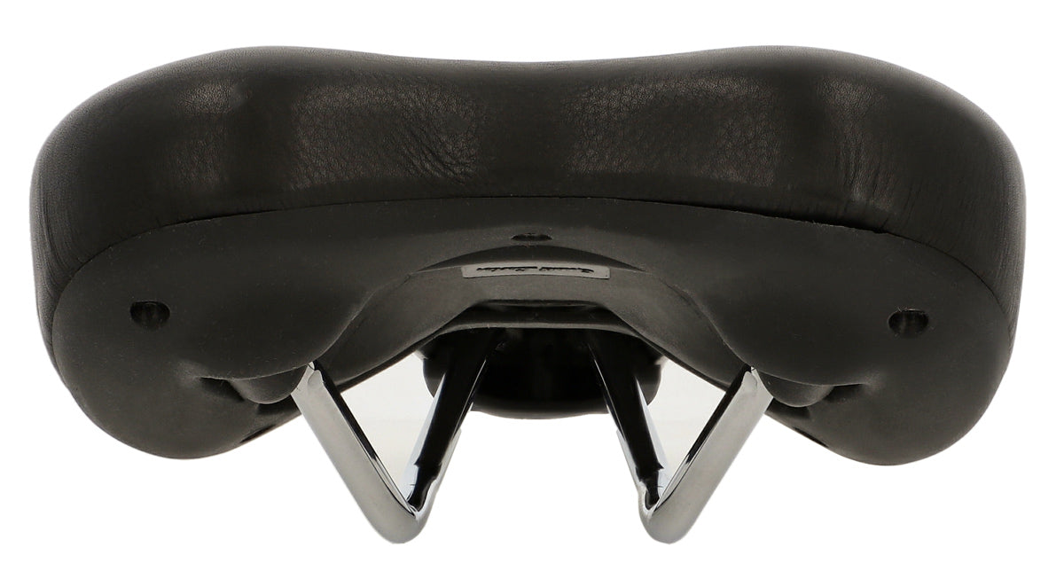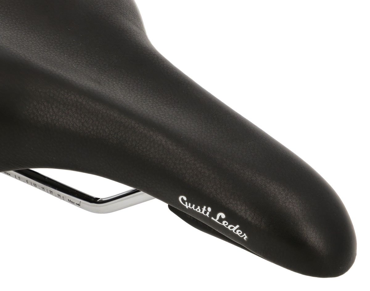 „Regina S.“ ist aus äußerst widerstandsfähigem Büffelleder gearbeitet und damit – anders als Sättel aus anderen Materialien – zu 100 % atmungsaktiv. Auch mit Rissen, wie sie beispielsweise bei PVC-Sätteln nach einiger Zeit aufgrund von Materialermüdung zwangsläufig entstehen, hast Du bei „Regina S.“ – wie bei all unseren anderen Ledersätteln – keine Probleme. Und dank der im Bereich des Pos verbreiterten Sitzfläche, der mittig platzierten Mulde zur Entlastung des Schambeins sowie seiner leichten Polsterung ist der Sattel unheimlich komfortabel und bequem – und das schon ab der ersten Fahrt. Schwing Dich also direkt nach der Montage auf Dein Rad und fühl Dich sofort wohl!