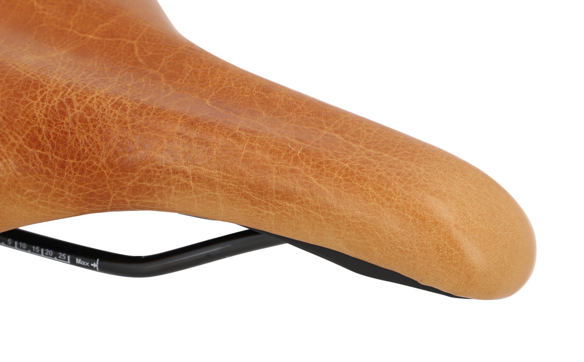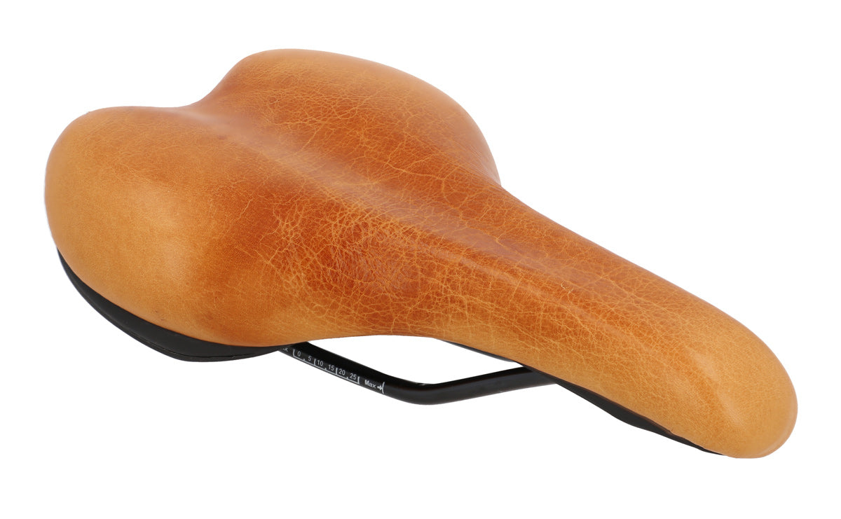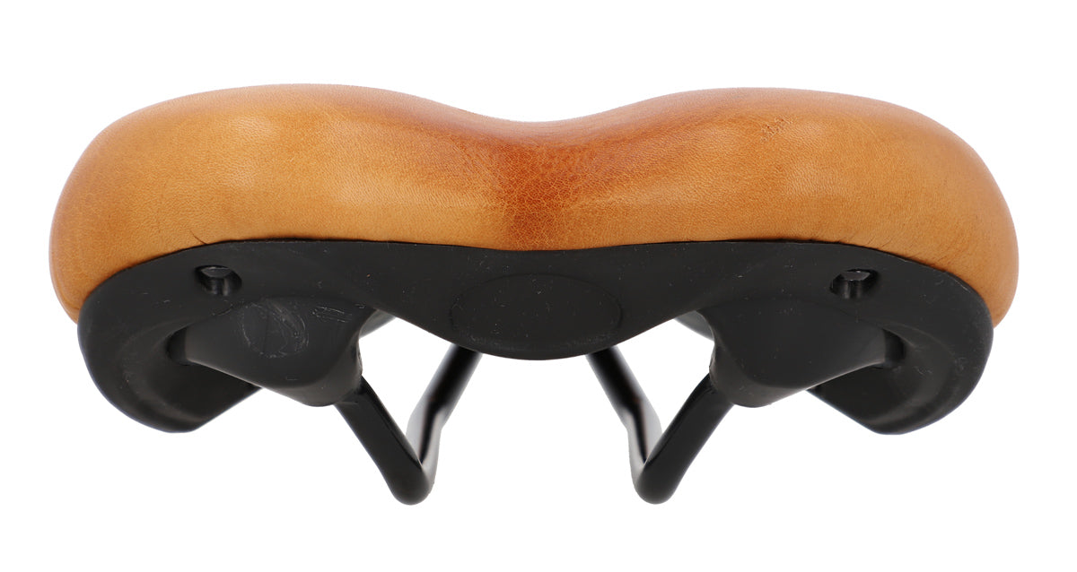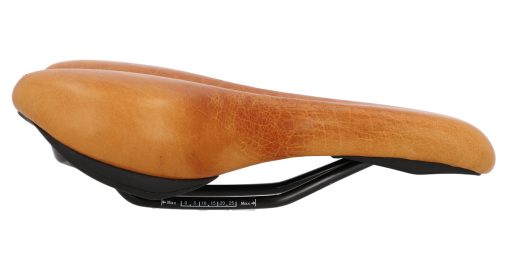 „Regina S.“ ist aus äußerst widerstandsfähigem Rindsleder gefertigt und damit – anders als Sättel aus anderen Materialien – zu 100 % atmungsaktiv. Das bedeutet für Dich: kein unangenehmes Schwitzen, kein Scheuern und keine Materialrisse, wie sie häufig bei PVC-Sätteln entstehen. Dank der breiten Sitzfläche, der mittig platzierten Mulde zur Entlastung des Schambeins und der leichten Polsterung sorgt dieser Sattel für ein besonders bequemes Fahrgefühl – und das schon ab der ersten Fahrt. Schwing Dich also direkt nach der Montage auf Dein Rad und genieße jede Strecke!