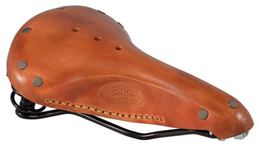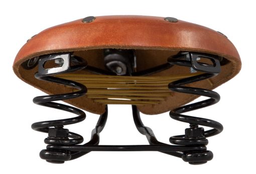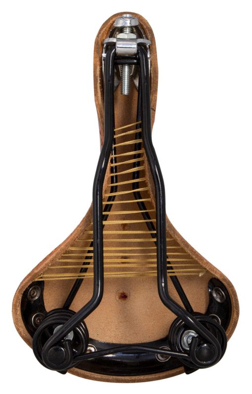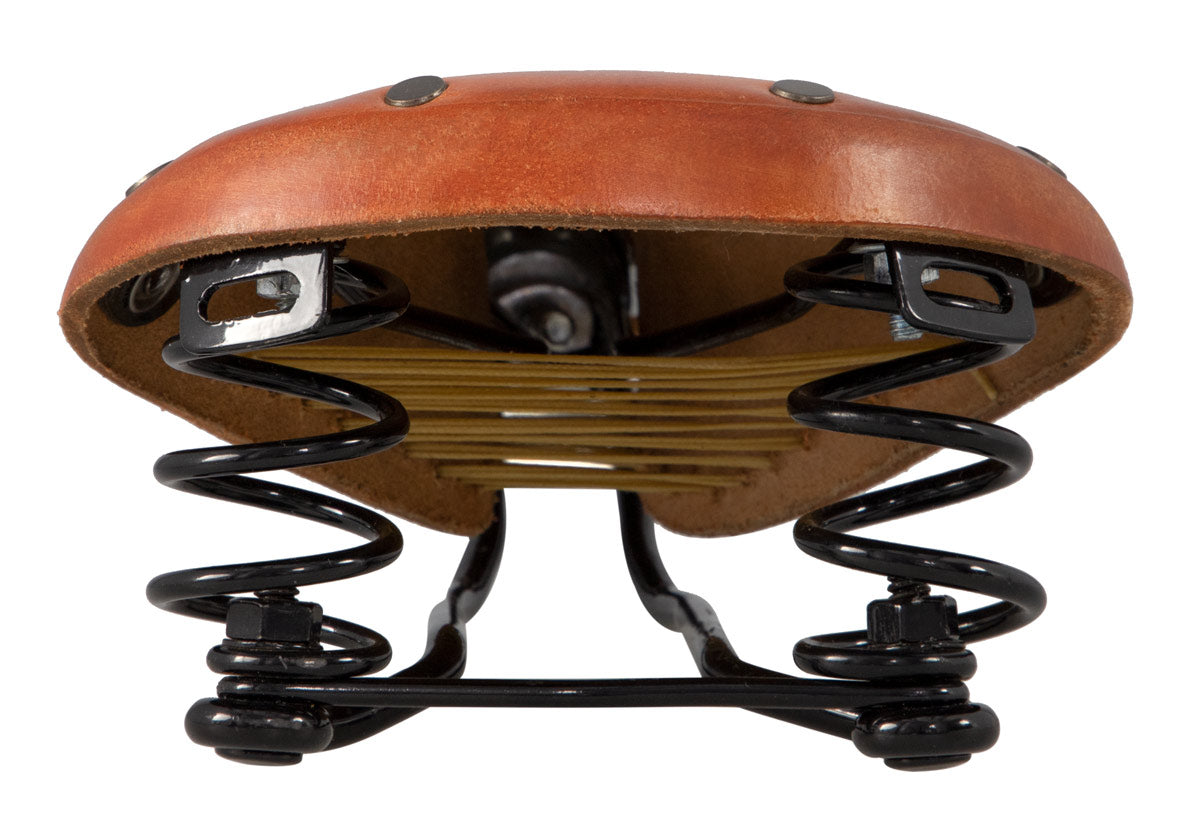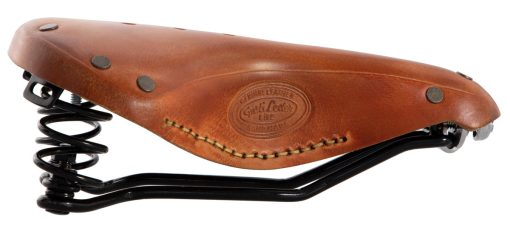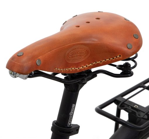 „Walter G.“ ist aus äußerst widerstandsfähigem Büffelleder gefertigt und rundum mit Nieten beschlagen, die ihm einen zusätzlichen Vintage-Charme verleihen. Seine schmale, ergonomische Form ermöglicht eine sportliche Sitzhaltung, während die zwei unterhalb der Sitzfläche befestigten Stahlfedern für eine angenehme Dämpfung sorgen. Zusätzlich bieten Dir zwei Halterösen an der Rückseite die Möglichkeit, eine Satteltasche für Werkzeug oder kleine Essentials zu befestigen – so bist Du auf jeder Tour bestens ausgestattet.