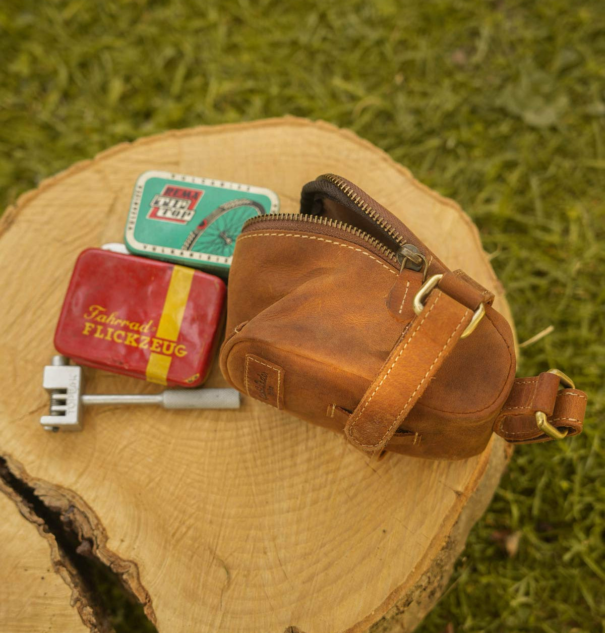 Mit der Satteltasche „Gino B.“ bist Du bestens auf unerwartete Pannen vorbereitet. Die kompakte Tasche aus robustem Büffelleder bietet genug Platz für Ersatzschlauch, Flickzeug oder kleines Werkzeug. Dank ihres zeitlosen Designs passt sie perfekt zu jedem Fahrrad und begleitet Dich zuverlässig auf jeder Tour. Zudem ist sie wasserabweisend, sodass Deine Habseligkeiten auch bei Regen geschützt bleiben.