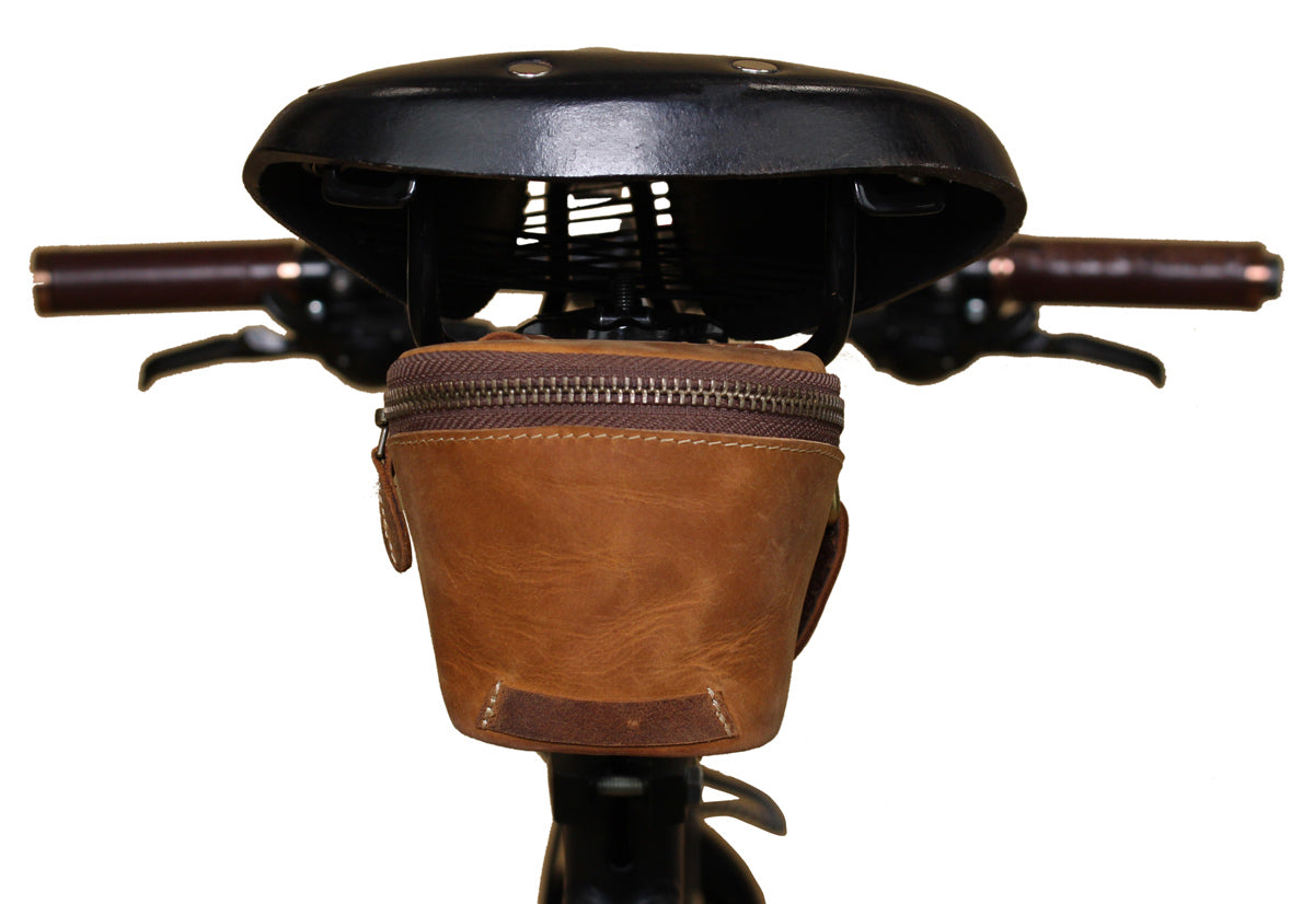 Der Reißverschluss und das wasserabweisende Innenfutter sorgen dafür, dass Deine Ausrüstung stets sicher und trocken bleibt. Die Tasche wird mit Lederriemen unter dem Sattel befestigt und zusätzlich mit einem weiteren Riemen sicher um die Querstange fixiert. So sitzt „Gino B.“ fest und stabil, ohne zu verrutschen – perfekt für jede Strecke.