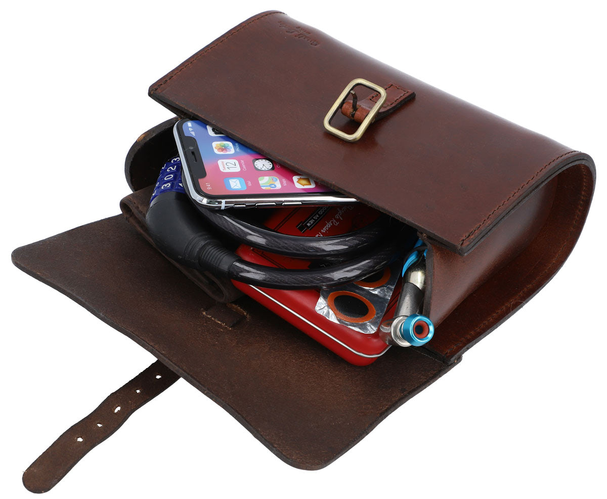 Mit der Satteltasche „Marianne V.“ hast Du alles Wichtige immer griffbereit – egal, ob auf dem Weg ins Büro oder auf einer längeren Tour. Ihr kompaktes, praktisches Design sorgt für eine sichere Aufbewahrung Deiner Essentials. Hergestellt aus hochwertigem Büffelleder, verbindet sie Funktionalität mit einem stilvollen Vintage-Look.