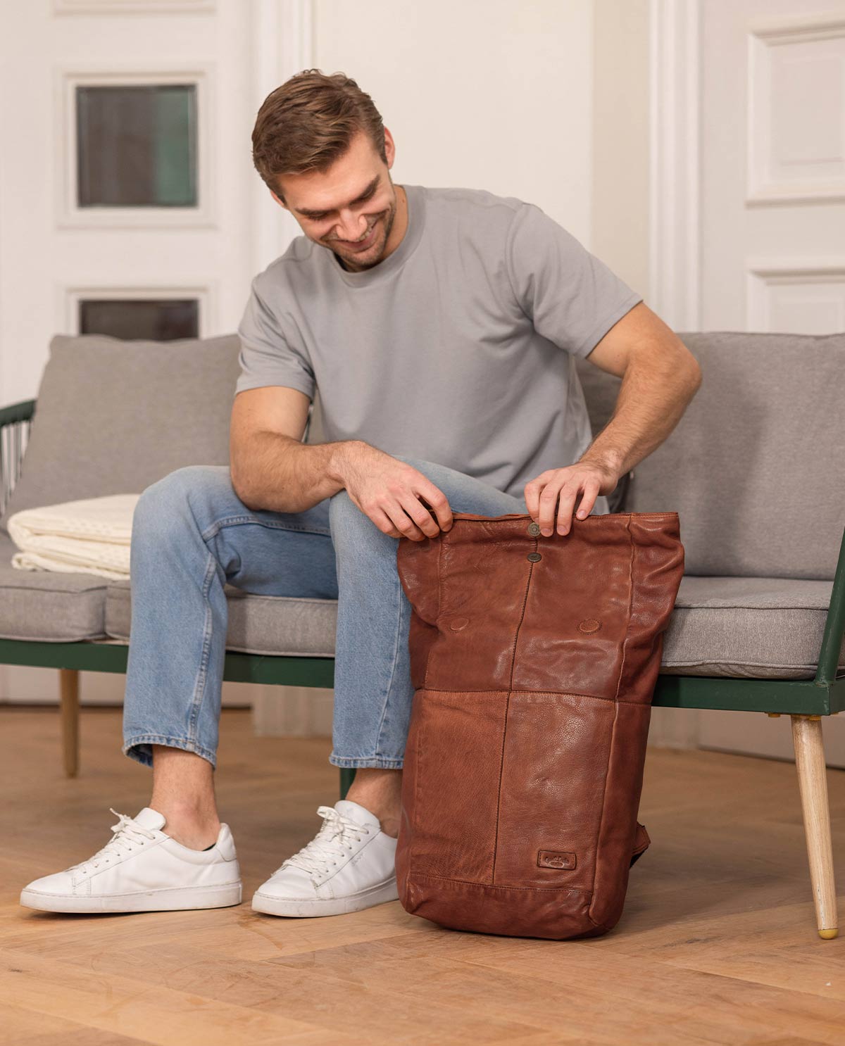Ob fürs Büro, die Uni oder Deine Freizeitgestaltung – unser wunderschöner Kurierrucksack „Joy“ wird Dich und Deine Umgebung im Handumdrehen verzaubern. Denn der Rucksack weiß mit seiner Flexibilität, seinem hohen Tragekomfort und Platzangebot ebenso zu überzeugen wie mit seinem dezent-eleganten Design. Außerdem fällt schmalgeschnittene Daypack aus braunem Rindsleder vor allem durch sein angesagtes Fliptop auf – ein Look, an dem man momentan einfach nicht vorbeikommt.