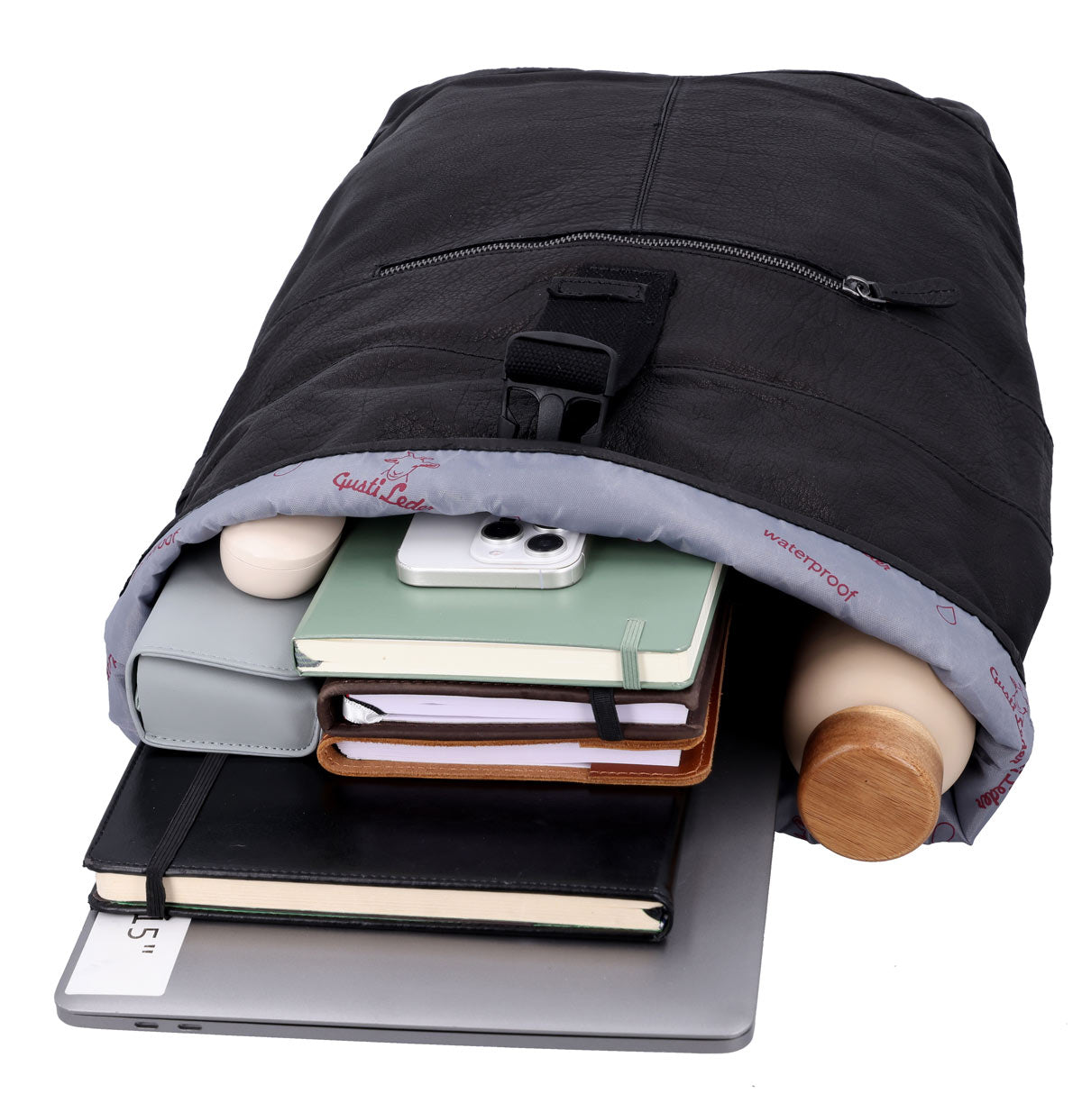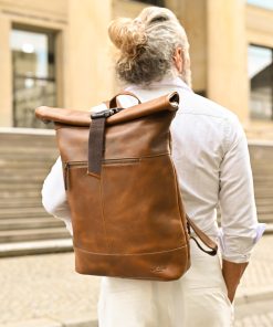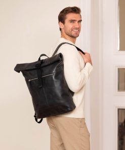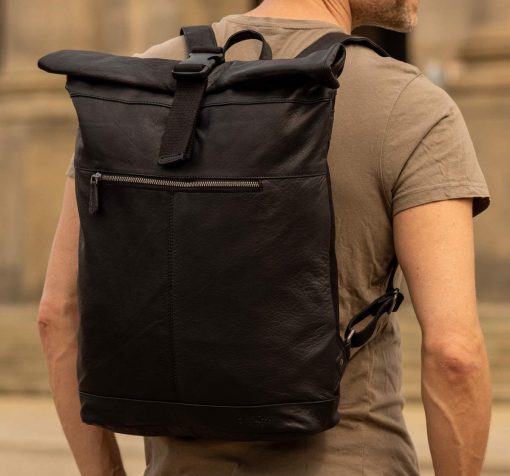 Ob für Schule, Uni oder Arbeit – unser Rolltop-Rucksack „Mattis“ passt einfach immer. Denn er weiß mit seiner Flexibilität, seinem hohen Tragekomfort und Platzangebot zu überzeugen. Dieser klassisch-robuste Daypack aus schwarzem Büffelleder fällt dabei vor allem durch sein trendiges Rolltop auf – ein Look, an dem man momentan einfach nicht vorbeikommt.