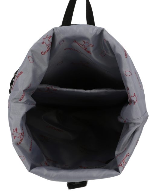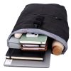 Der Rucksack besticht jedoch nicht nur durch seinen Look, sondern auch durch den Stauraum, den er Dir bietet. Im wirklich geräumigen Innenfach mit dem zusätzlichen Steckfach finden ohne Weiteres ein DIN A4-Ordner oder ein 15″- Notebook Platz, eine ganze Hand voll Bücher und eine große Trinkflasche. Der Verschlussmechanismus des Hauptfachs ist dabei ebenso einfach wie praktisch umgesetzt und schützt Deine Habseligkeiten vor Feuchtigkeit und Staub. Der Innenraum des Rucksacks ist mit schwarzem Canvas ausgekleidet, das gleiche Material, das auch für die gepolsterte Rückenpartie und die Unterseite der längenverstellbaren Schultergurte verwendet wurde – und bietet Dir so eine gehörige Extraportion Tragekomfort. Und das Reißverschlussfach außen bietet derweil Platz für Dinge, die Du immer wieder zwischendurch benötigst: Taschentücher, Kaugummi, Handdesinfektion usw.