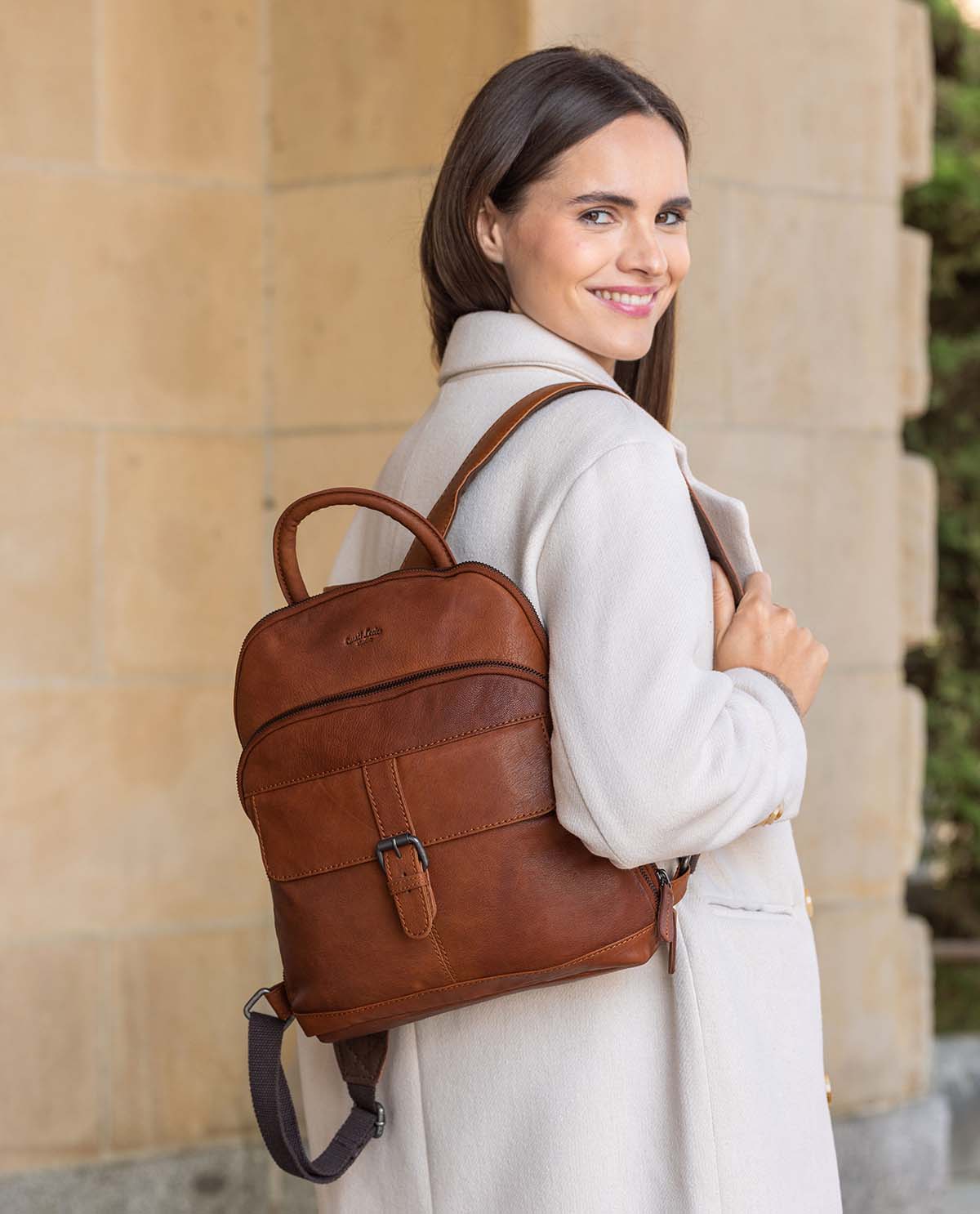 Eine treue Begleiterin für den Alltag – das ist „Alena“. Dieser wunderschöne City-Rucksack aus robustem und hochwertig verarbeitetem Ziegenleder in eleganter Optik besticht durch seine grazile Erscheinung, überzeugt aber auch aus praktischen Gründen. So macht das Leder den Rucksack formstabil, was in weiterem für einen optimalen Tragekomfort unabdingbar ist. Außerdem brauchst Du mit diesem wunderschönen Rucksack den Vergleich mit einer geräumigen Handtasche nicht zu scheuen.