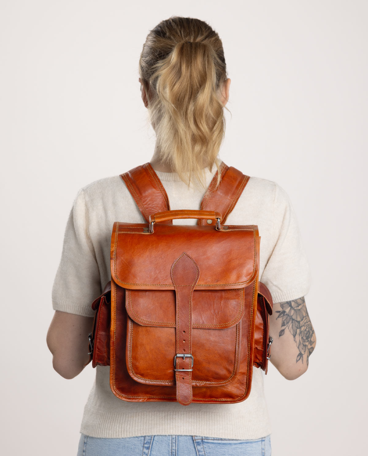 „Eleanor“ ist kein gewöhnlicher Rucksack – das merkt jede*r schon auf den ersten Blick. Denn dieser wunderschöne City-Rucksack im angesagten Boho-Vintage-Style besticht durch sein Äußeres ebenso wie durch sein kompaktes, zugleich aber funktionales Design. Inspiriert durch den Berliner Großstadt Flair, vereint „Eleanor“ urbanen Chic und praktische Funktionalität. Dieser süße Lederrucksack bietet Stauraum für alles, was Du auf einem ausgedehnten Spaziergang, den Nachmittag auf dem Spielplatz oder für den nächsten Shoppingbummel mit Deinen Mädels brauchst: ob Taschenkalender im DIN A6-Format, Smartphone, Portemonnaie, Sonnenbrille, Trinkflasche oder eine Dose für den kleinen Snack zwischendurch – alles findet in „Eleanor“ Platz.