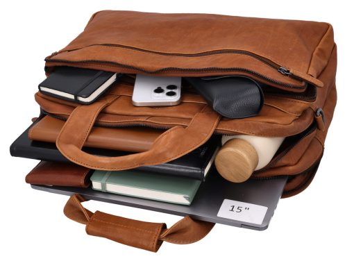 Die „Alvaro“ ist die perfekte Businesstasche für alle, die Eleganz mit Funktionalität verbinden möchten. Gefertigt aus hochwertigem braunen Leder, verleiht sie Deinem Look eine zeitlose und professionelle Note. Mit durchdachtem Design und großzügigem Stauraum ist sie ideal als Arbeitstasche für Meetings, Reisen oder den Büroalltag. Dank der doppelten Reißverschlussfächer behältst Du stets den Überblick über Deine Dokumente und Arbeitsutensilien.
