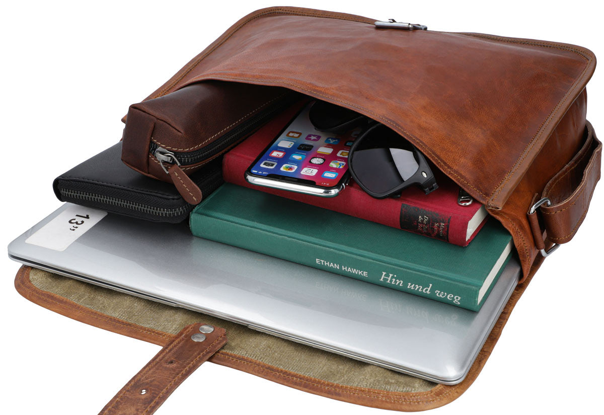 Die „Andy 11“ Umhängetasche überzeugt mit ihrer optimalen Größe, die sie sowohl zum perfekten Begleiter für den Job als auch für den Shoppingtrip am Wochenende macht. Dein 11-Zoll-Notebook sowie A4-Dokumente finden im geräumigen Innenfach ihren Platz. Auch Deine neu erstandene Sonnenbrille lässt sich unkompliziert verstauen. Zwei kleinere, schmalere Innenfächer bieten Dir zusätzlich die Möglichkeit, Deine wichtigsten Utensilien, wie Taschentücher oder Handy, stets griffbereit zu haben. Der Klappdeckel mit Schnallenverschluss sorgt nicht nur für Sicherheit, sondern verleiht der Tasche gleichzeitig einen individuellen und angesagten Vintage-College-Style. Eins ist garantiert: „Andy 11“ wird garantiert jede Menge neidische Blicke auf sich ziehen.