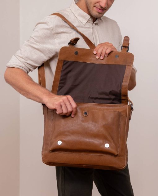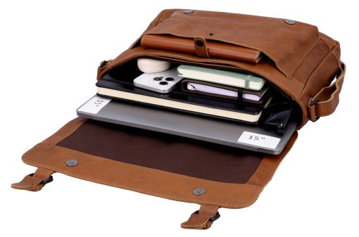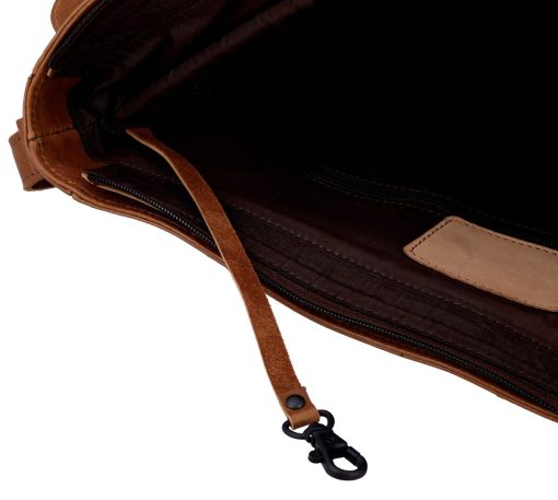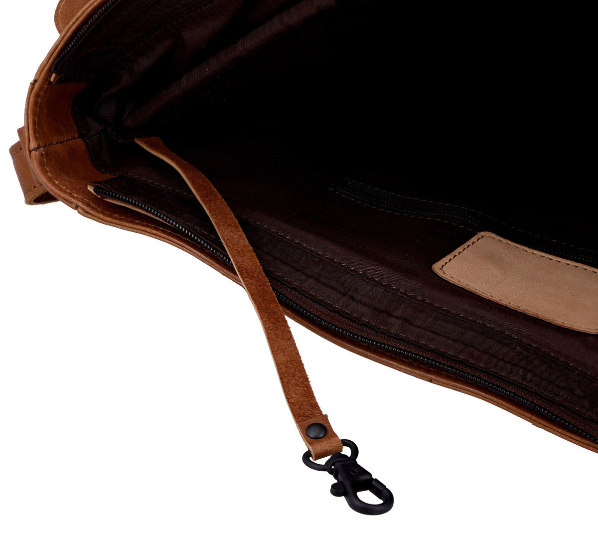 Die „Attila“ Laptoptasche aus hochwertigem Leder ist der perfekte Begleiter für Deinen Arbeitsalltag. Sie vereint modernes Design mit durchdachter Funktionalität, um Deine wertvollen Geräte sicher und stilvoll zu transportieren. Mit einem gepolsterten Laptopfach, das durch einen Lederriemen und einen Klettverschluss optimal geschützt wird, ist Dein Laptop immer sicher verstaut. Zusätzlich sorgt das praktische Schlüsselband im Hauptfach dafür, dass Du Deine Schlüssel immer griffbereit hast. Dank des robusten Materials und der sorgfältigen Verarbeitung ist diese Tasche sowohl langlebig als auch elegant.