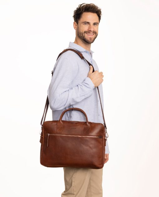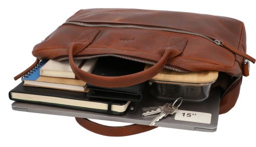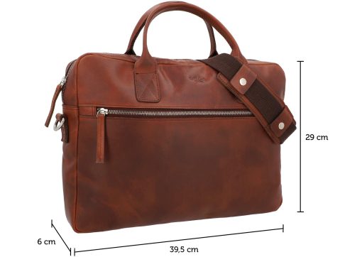 Die Arbeitstasche ist nicht nur stilvoll, sondern auch funktional ausgestattet. Mit dem verstellbaren Schulterriemen kannst Du die Tasche bequem als Umhängetasche tragen und hast so immer beide Hände frei. In der zusätzlichen Vordertasche mit Reißverschluss findest Du Platz für weitere wichtige Gegenstände wie Dein Smartphone oder Portemonnaie. Die Businesstasche wird aus hochwertigem Rindsleder gefertigt und von erfahrenen Handwerkern sorgfältig verarbeitet. Dadurch ist sie nicht nur langlebig, sondern auch besonders robust – ein perfekter Begleiter für Deinen Alltag.