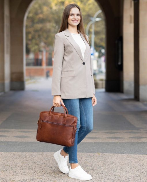 Dein perfekter Begleiter: Die Aktentasche „Elijah“ in Vintage-Braun aus pflanzlich gegerbtem Leder!