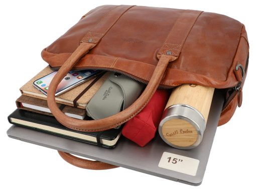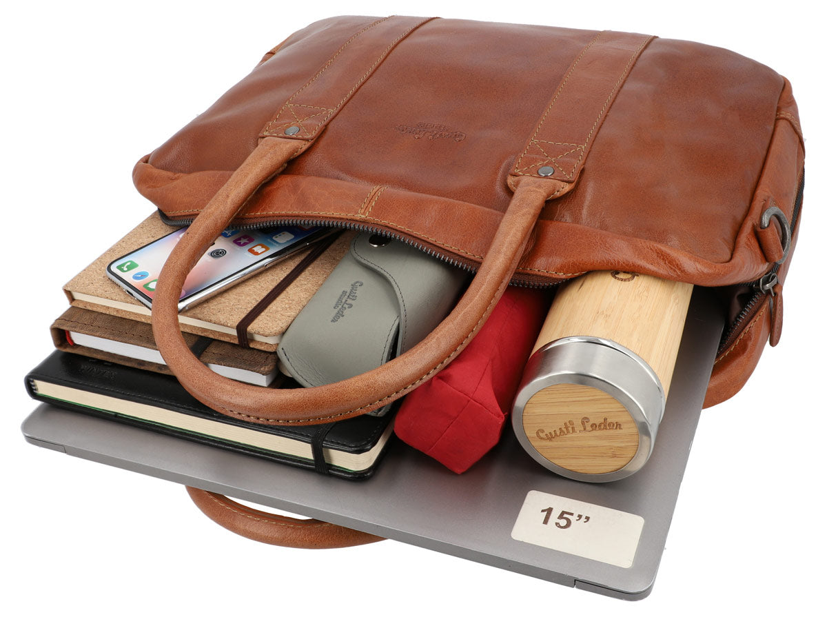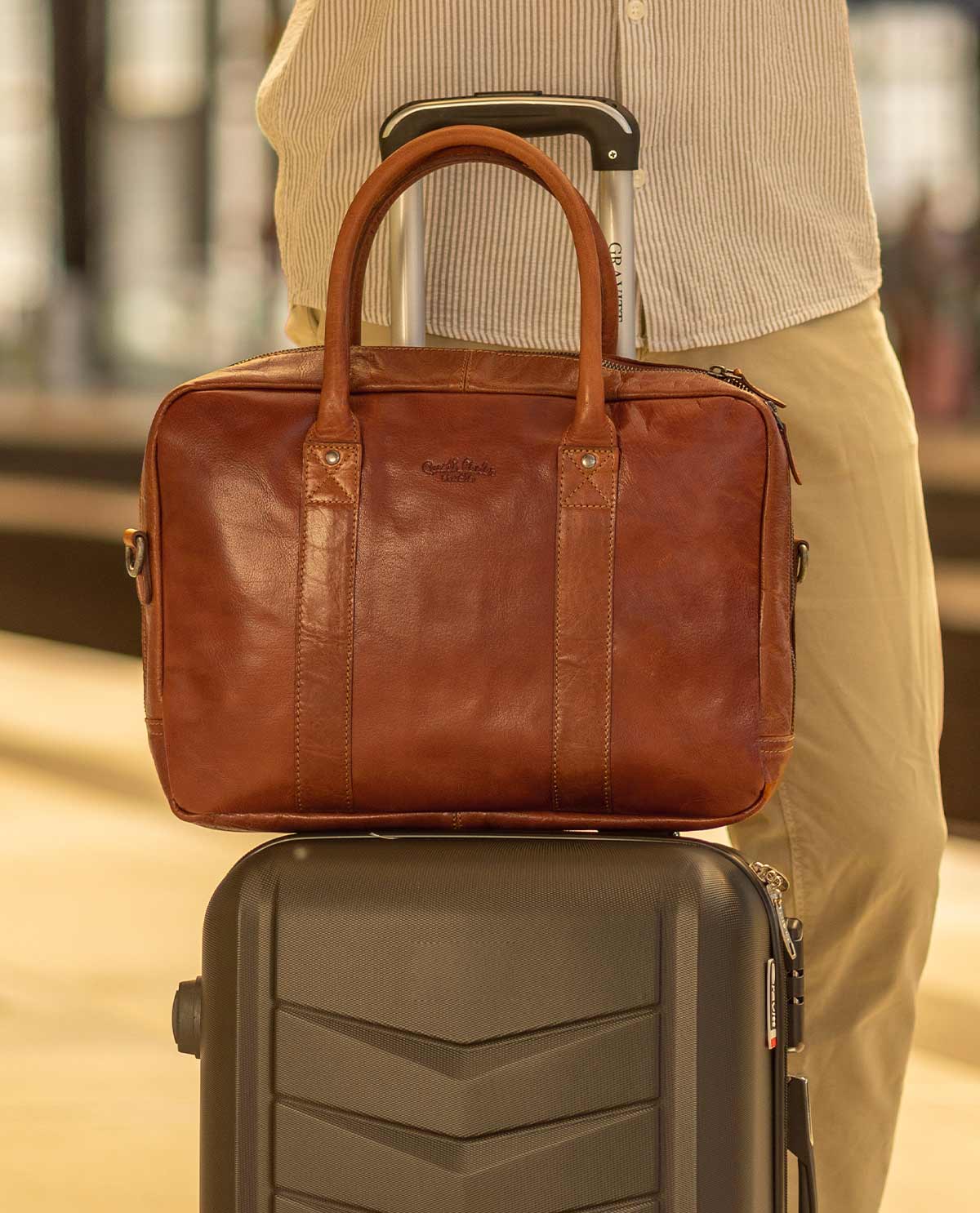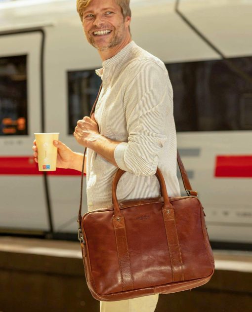 Wir stellen vor: „Fynn“ – dein neuer Lederliebling. Ob Uni, Arbeit oder Alltagstasche: „Fynn“ überzeugt in jeder Lebenslage, denn er hat alles, was Du von einer Aktentasche erwarten kannst. Inspiriert durch Berlin, vereint er urbanen Stil mit außergewöhnlicher Funktionalität. Neben einem Fach für deinen 15″ Laptop hat Fynn noch viele weitere Fächer, in denen du Blöcke, Berichte und Bücher unterbringen kannst, ebenso wie diverse Ladegeräte, Notizbuch und Co., Dein Stifteetui, Essentials wie Geldbörse, Smartphone, aber auch Trinkflasche und Schlüssel – einfach alles, was Du auf einer Geschäftsreise bei Dir haben solltest. Dank der weiten Reißverschlüsse kommst Du im Handumdrehen an alle Dinge, die Du gerade benötigst. Und wenn Du die Tasche doch einmal schultern möchtest, ist das auch kein Problem, denn „Fynn“ hat neben den zwei Handhenkeln einen abnehmbaren Trageriemen, den Du individuell auf die für Dich passende Länge einstellen kannst.