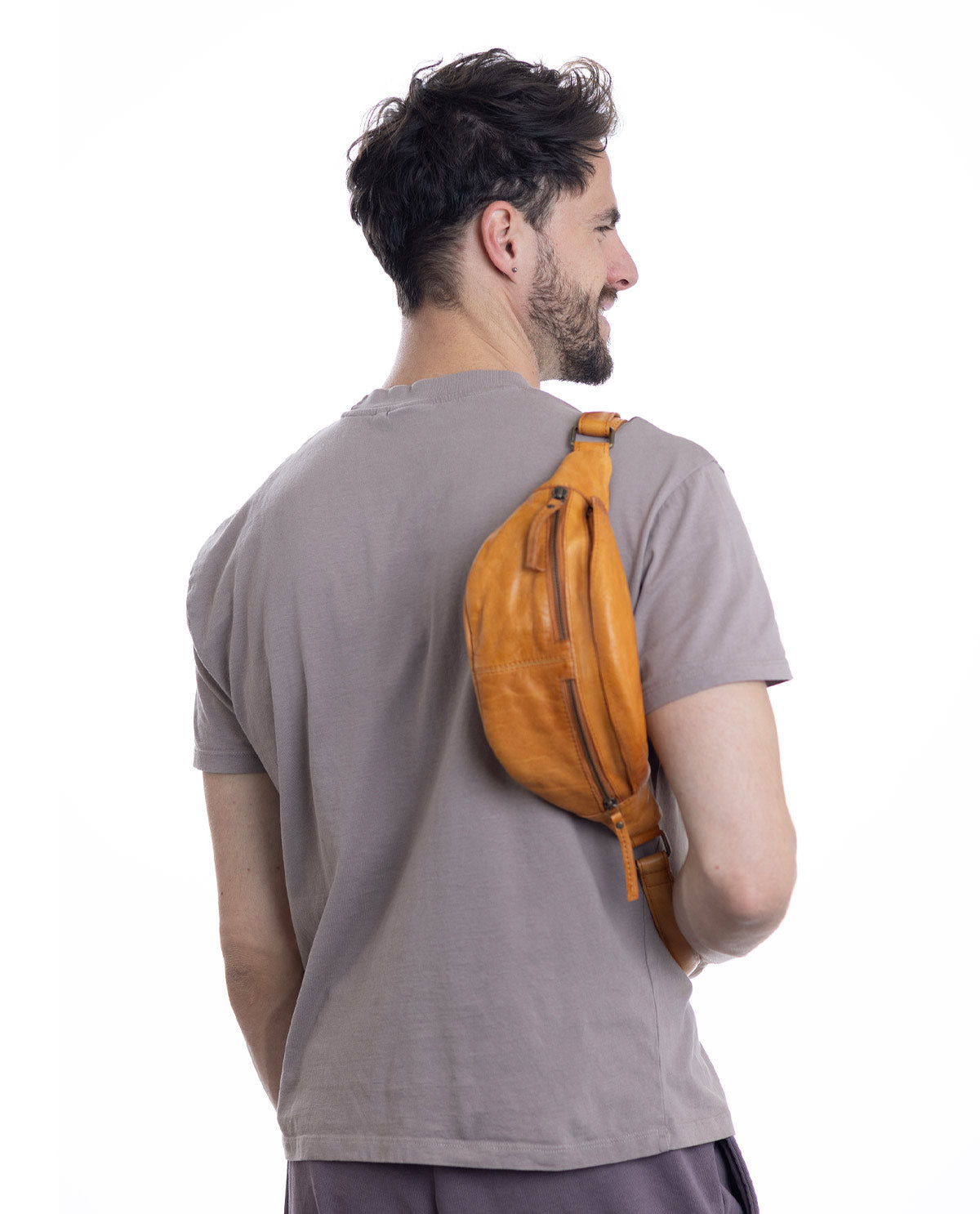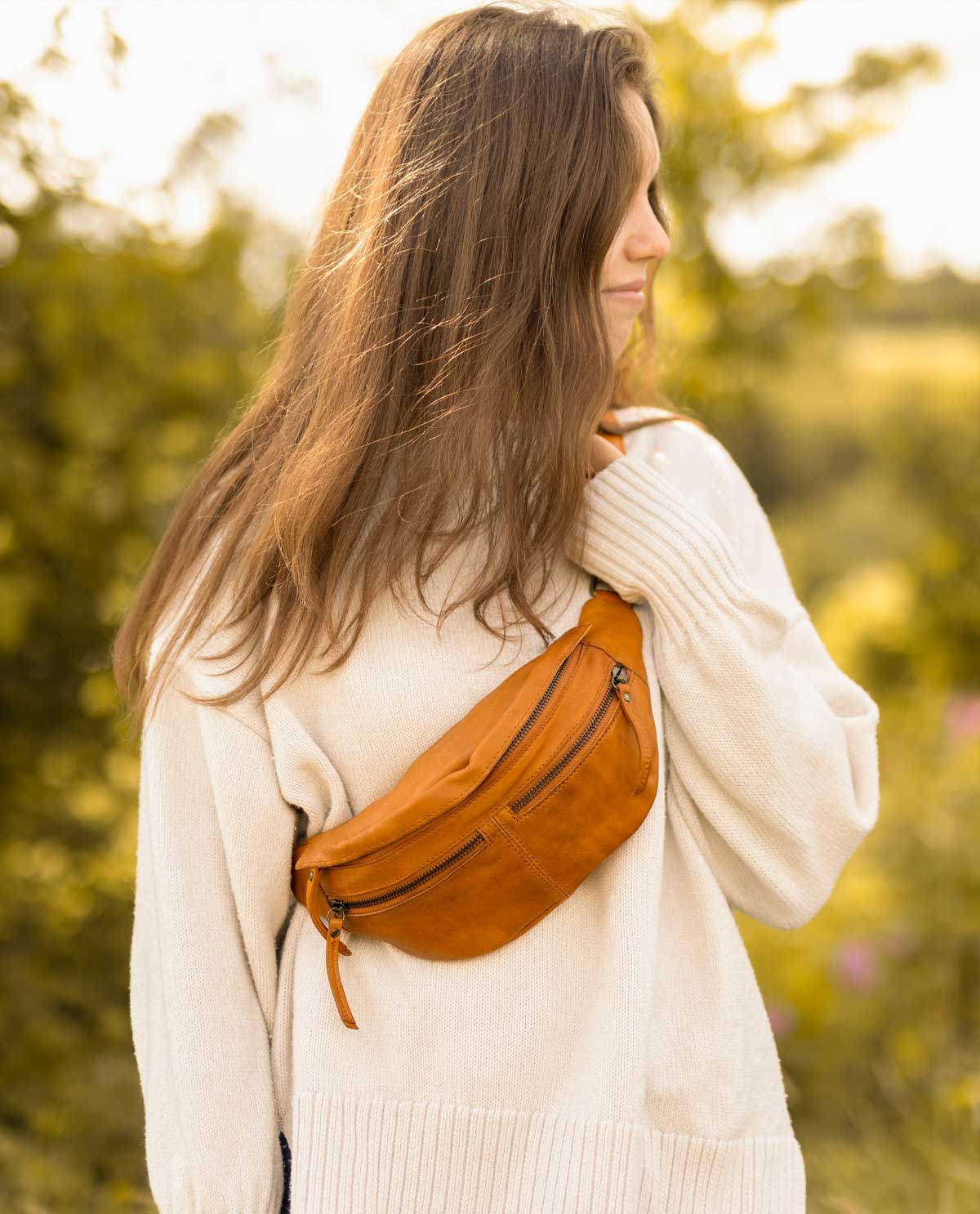 Du suchst noch eine coole Bauchtasche für die nächste Festivalsaison, eine praktische Aufbewahrungsmöglichkeit für Snacks auf der Piste oder einfach eine kleine Tasche, in der du deine Sachen beisammen halten kannst? Dann bist du bei „Acton“ auf jeden Fall richtig! Die coole Vintageoptik macht die Tasche aus robustem Rindsleder definitiv zu etwas besonderem, so siehst du immer gut gestylt aus. Im großen Hauptfach kannst du deine Habseligkeiten großzügig unterbringen. An der Vorderseite findest du noch zusätzlich zwei kleine Taschen, die du ebenfalls mit einem Reißverschluss verschließen kannst. Das Coachella kann kommen! Aber auch im Winter macht er auf Konzerten eine gute Figur und nimmt mühelos Portemonnaie, Schlüssel und Smartphone für dich mit! So kannst du ganz gedankenlos tanzen und die Musik genießen, deine Sachen sind sicher.