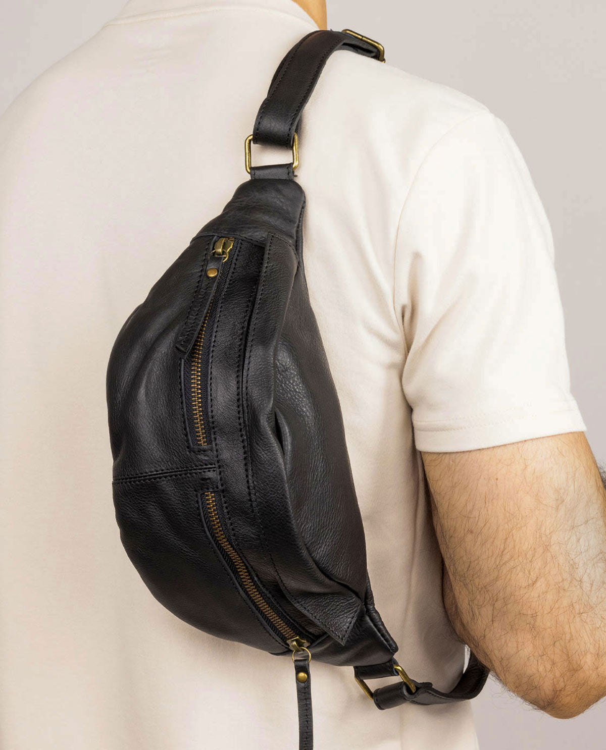 Suchst Du eine coole Bauchtasche für die Festivalsaison, eine praktische Aufbewahrungsmöglichkeit für Snacks auf der Piste oder einfach eine kleine Tasche, in der Du Deine Sachen sicher beisammenhalten kannst? Inspiriert durch Berlin macht die Bauchtasche „Acton“ aus robustem Rindsleder mit cooler Vintageoptik jeden Look besonders. Im großen Hauptfach findest Du großzügig Platz für Deine Habseligkeiten. Zusätzlich gibt es an der Vorderseite zwei kleine Taschen, die Du mit Reißverschluss verschließen kannst.
