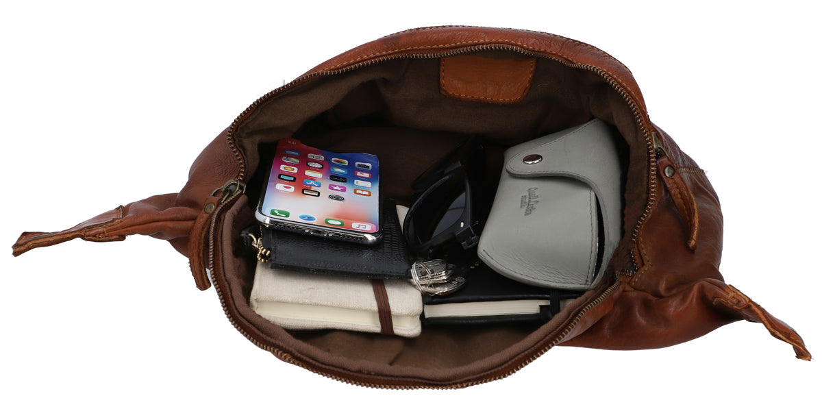 Freya“ ist eine echte Platzheldin unter den Bauchtaschen und bietet durch ihr Haupt- und Nebenfach viel Platz für Deine wichtigsten Utensilien. Aus hochwertig gegerbten Rindsleder lässt sich „Freya“ nicht nur angenehm anfassen – die beiden großen Reißverschlussfächer bieten genügend Platz für Handy Schlüssel, Geldbeutel, A5 Notizbuch und alles was du noch an Souvenirs vom nächsten Festival noch mitnehmen willst. Sie besticht im angesagten Vintage-Look und mit ihrer natürlichen Ausstrahlung. Du möchtest „Freya“ mit einer Widmung versehen? Kein Problem! Im Inneren wird dafür extra ein Lederpatch angebracht, wo du einen Namen oder einen kurzen Text eingravieren lassen kannst. Probier es doch mal aus! Aufgrund des natürlichen Herstellungsprozesses kann es bei unseren Gusti Leder Nature Lieblingen zu Farbabweichungen kommen.