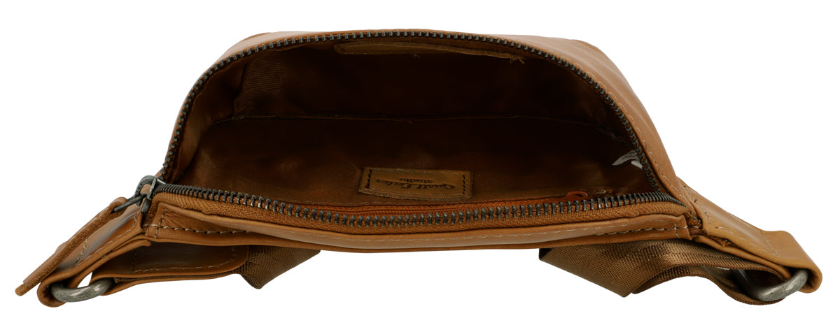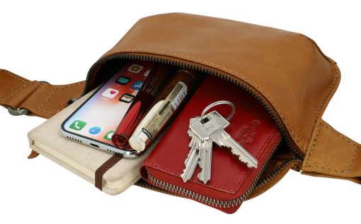 „Norell“ ist eine klassische Bauchtasche und bietet durch ihr Hauptfach viel Platz für deine wichtigsten Utensilien. Aus hochwertig gegerbten Rindsleder ist „Norell“ nicht nur robust und stabil – das große Reißverschlussfach bietet genügend Platz für Handy Schlüssel, Geldbeutel, Notizbuch und alles was du noch an Souvenirs vom nächsten Festival mitnehmen willst. Sie besticht im angesagten Vintage-Look und mit ihrer natürlichen Ausstrahlung.