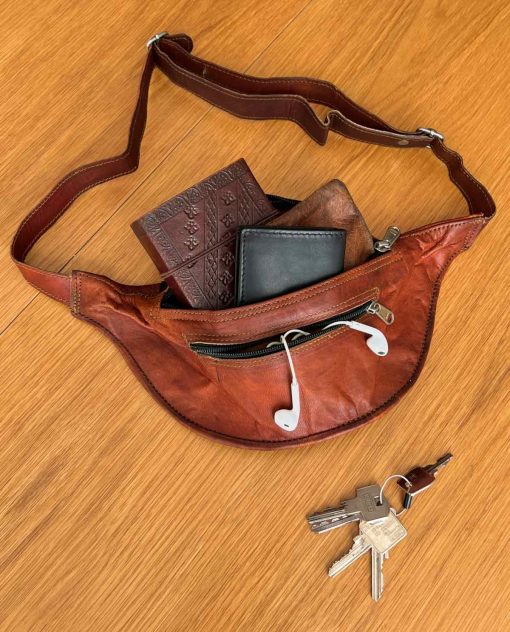 Klassisch schick mit dem Hauch Außergewöhnlichkeit und Individualität, verbunden mit praktischer Handhabung und viel Platz für Deine wichtigsten Utensilien. Klingt ja fast zu schön, um wahr zu sein, aber „Richard“ bietet Dir genau das! Die Gürteltasche ist aus naturgegerbtem, weichem Ziegenleder gefertigt, dass sich durch seine Flexibilität perfekt an Deine Bedürfnisse anpassen kann. Erfahrene Festivalgänger werden „Richards“ Qualitäten bald zu schätzen wissen und kein Konzert wird mehr ohne ihn besuchen. Das große Hauptfach bietet genug Platz für Handy, allerhand Kleinkram und sogar ein Buch, falls dein Lieblingsact mal wierde länger braucht, um auf die Bühen zu kommen. In dem vorderen kleinen Fach kannst du Ohrstöpsel und Geldscheine unterbringen. So ist immer ales griffbereit. Reißverschlüsse sorgen dafür, dass Geld, Handy und Schlüssel nicht einfach verloren gehen können und halten Langfinger ab. Durch den längenverstellbaren Trageriemen passt sich „Richard“ jederzeit an dich an. Im angesagten Vintage-Look und mit seiner natürlichen Ausstrahlung ist „Richard“ einfach perfekt.