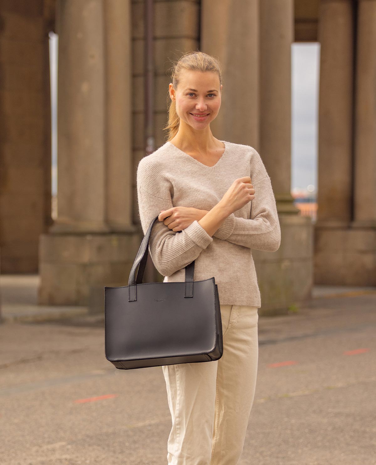 Du suchst nach einer stilvollen und praktischen Lösung für Deine wichtigsten Utensilien? Ein funktionaler Begleiter, der Dich nicht im Stich lässt und gleichzeitig durch seine Eleganz überzeugt? Dann ist die kleine „Agatha S“ genau das Richtige für Dich. Aus hochwertig gegerbtem Büffelleder gefertigt, besticht dieser kompakte Shopper durch seine Vielseitigkeit und zeigt, wie chic Funktionalität in kleiner Form sein kann. Inspiriert durch Berlin, bringt „Agatha S“ urbanen Charme und praktischen Luxus in Deinen Alltag.