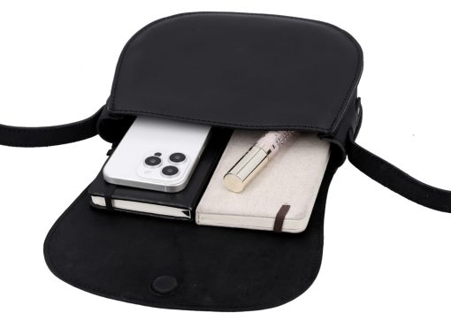 Gefertigt aus aus hochwertigem Rindsleder verfügt „Elenor“ über ein Hauptfach, sodass du den größtmöglichen Platz rausholen kannst – besonders wenn du lediglich das Nötigste dabei haben willst. Hier kannst du bequem Portmonnaie, Make Up, Schlüssel, Handy und Kopfhörer untebringen. Ein unsichtbarer Magnetverschluss schützt deine 7 Sachen zuverlässig und verhindert ein Herauspurzeln. Jetzt nur noch auf die Schulter und ab ins Getümmel – mit „Elenor“!