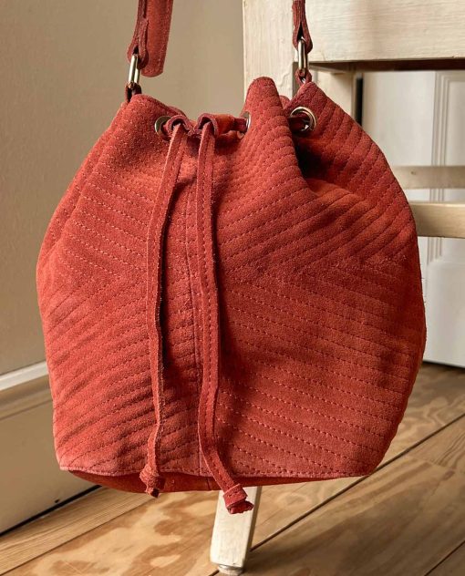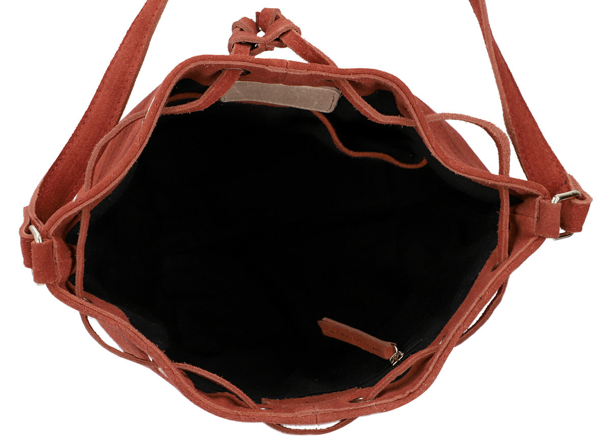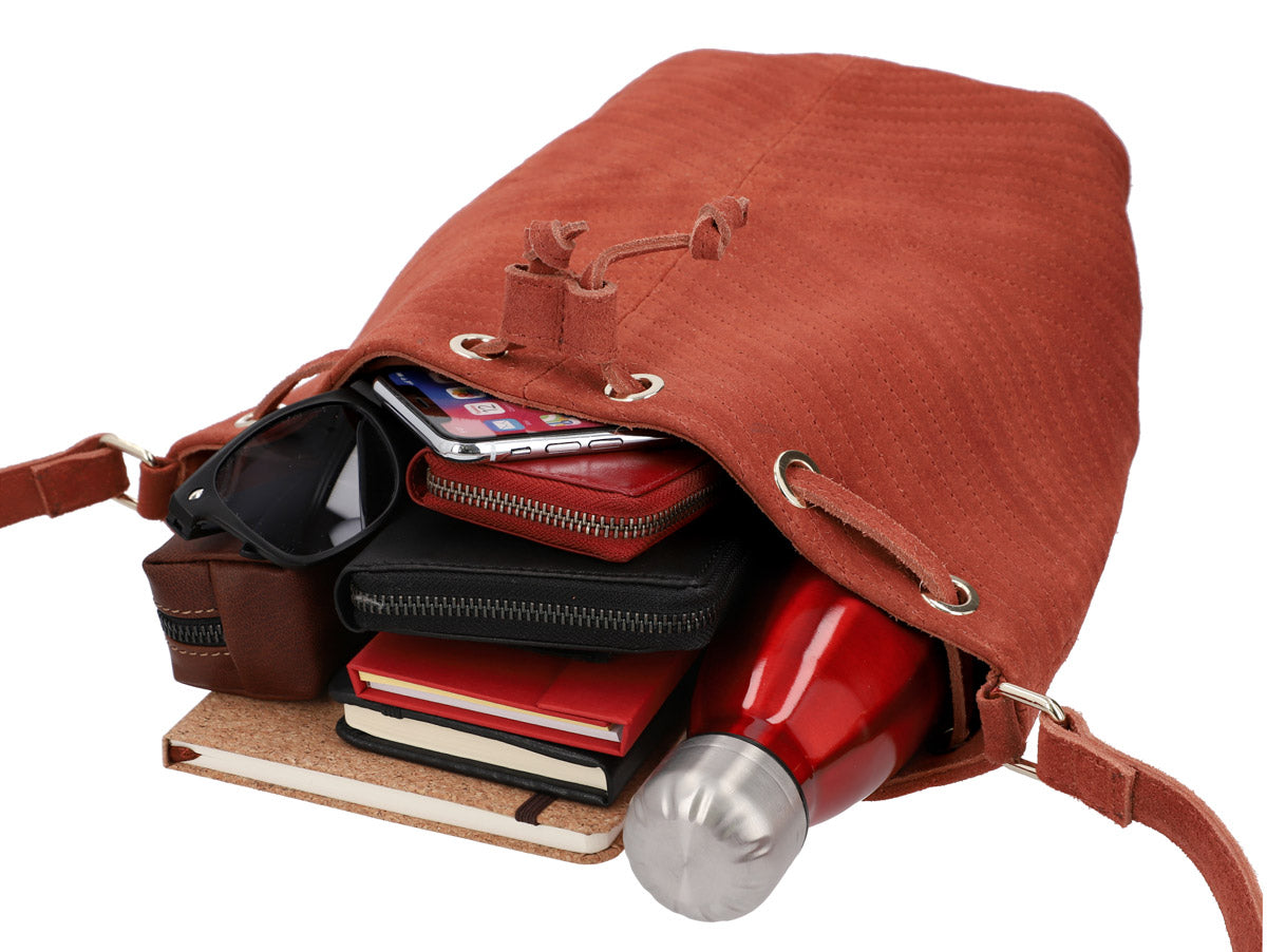 … so fühlst Du Dich mit unserer schicken „Grethe“. Denn diese wunderschöne Bucket Bag aus 100% echtem Wildleder verleiht nicht nur jedem Deiner Outfits den letzten Schliff , sondern erweist sich zugleich als ein kleines Platzwunder. Mit ihren großen Statement-Nieten für den Kordelzug und den geometrischen Ziernähten passt sie nicht nur zu jedem Anlass, sondern hält auch durch ihre Größe genügend Platz für Bücher, Journals, eine Trinkflasche, Beauty Bag uvm. bereit. Auf diese Weise erweist sich unsere „Grethe“ als die perfekte Begleitung für Büro und Freizeit.