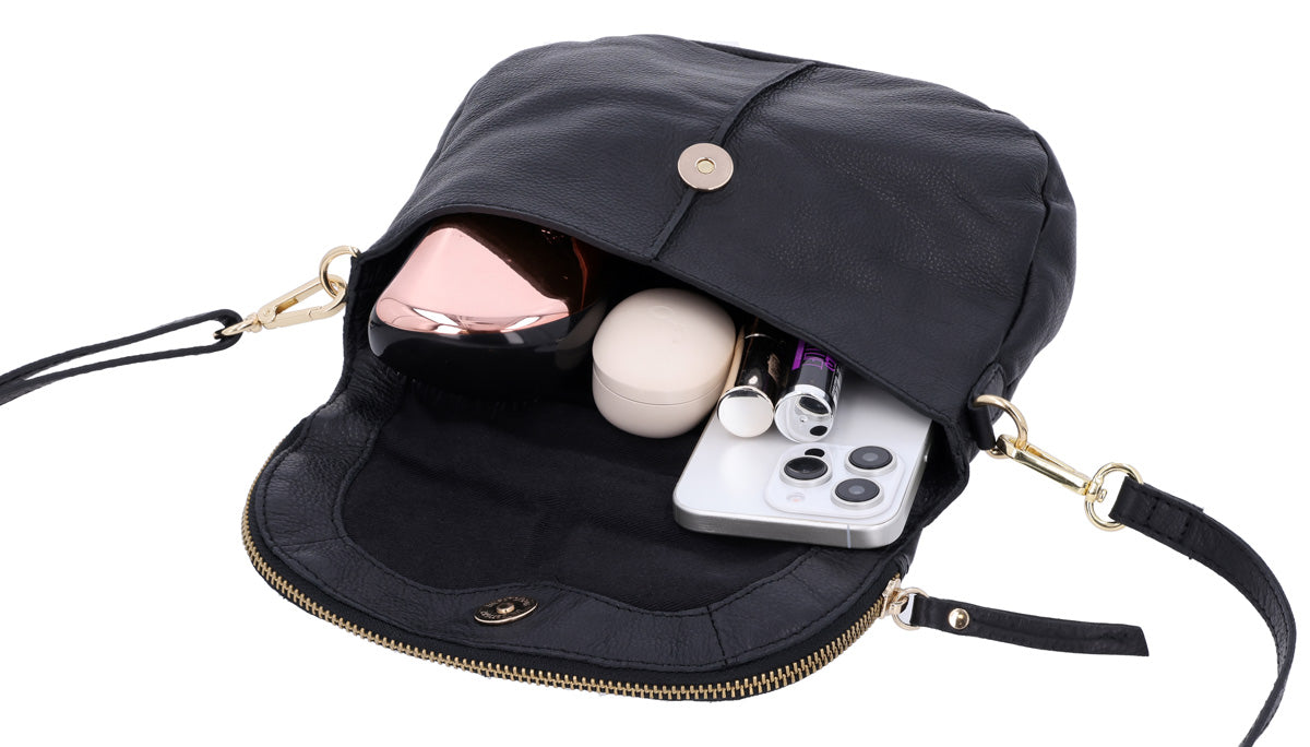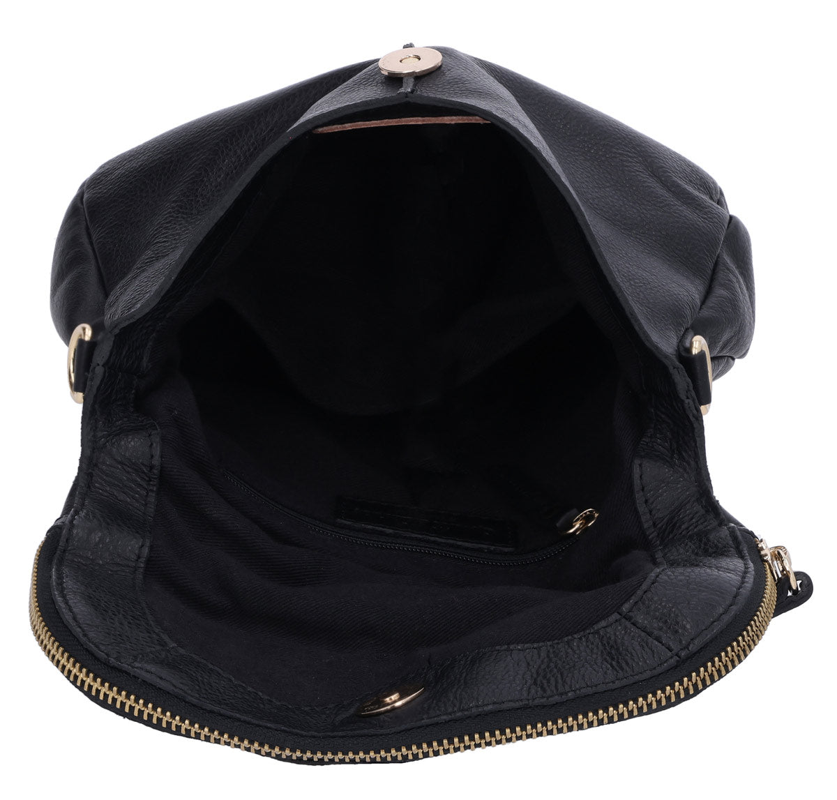 Die Umhängetasche „Iselin“ vereint zeitlose Eleganz mit durchdachter Funktionalität – der perfekte Begleiter für Deinen Alltag und besondere Anlässe. Gefertigt aus hochwertigem schwarzem Leder, überzeugt sie mit einer weichen Haptik und einer langlebigen Verarbeitung. Die edlen Metallelemente setzen dezente Akzente und unterstreichen die hochwertige Qualität.