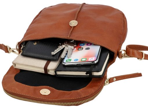Ob Terminplaner, Portemonnaie, Smartphone, Lieblingsbuch oder Make-up-Täschchen – alles findet in den geräumigen Fächern von „Iselin“ seinen Platz. Das zusätzliche Reißverschlussfach auf der Rückseite schützt Deine kostbarsten Habseligkeiten und sorgt für schnellen Zugriff auf wichtige Kleinigkeiten. Der weite goldfarbene Reißverschluss und der verdeckte Magnetverschluss halten alles sicher und schützen vor Feuchtigkeit und Staub. Der längenverstellbare Schultergurt sorgt zudem für optimalen Tragekomfort. Das hochwertige, widerstandsfähige und zugleich traumhaft weiche Echtleder unterstreicht Deinen Look – ob casual, stylisch-hip oder elegant – ganz ohne sich aufzudrängen.