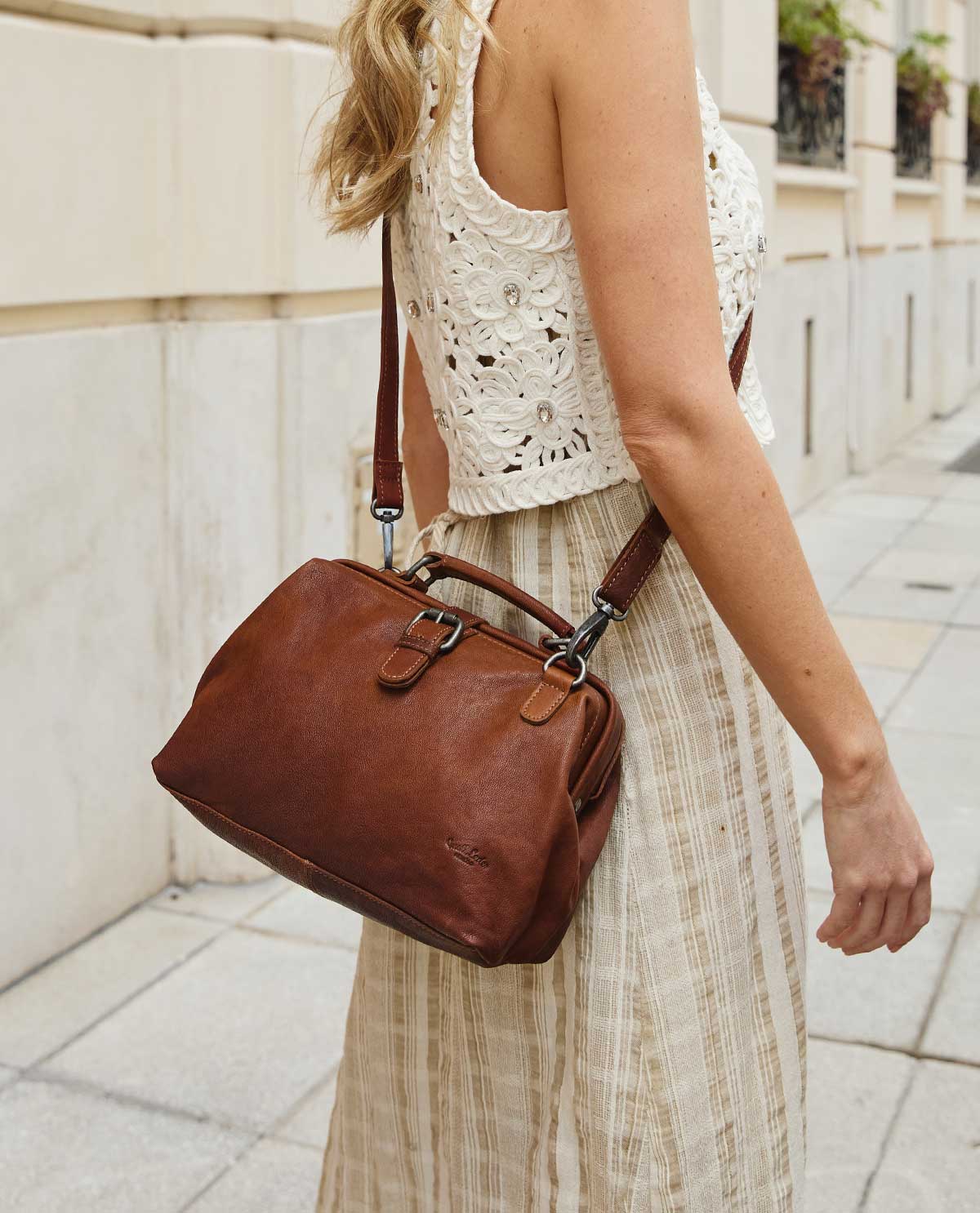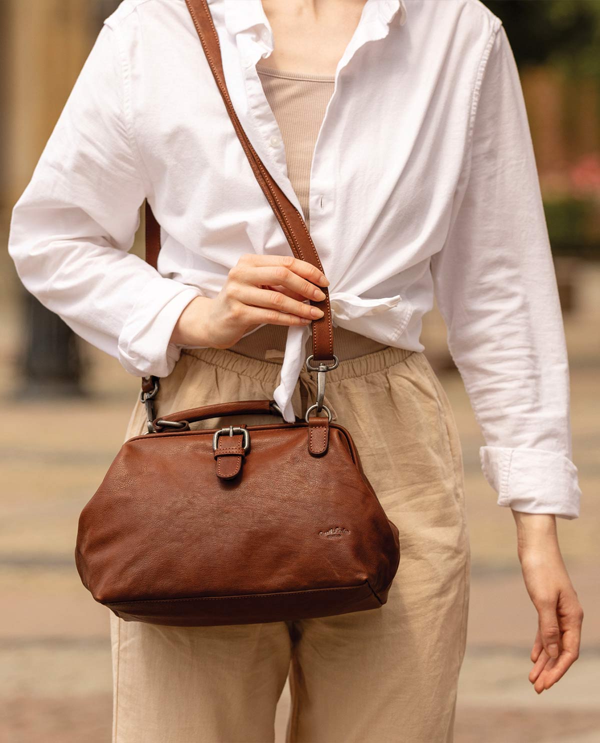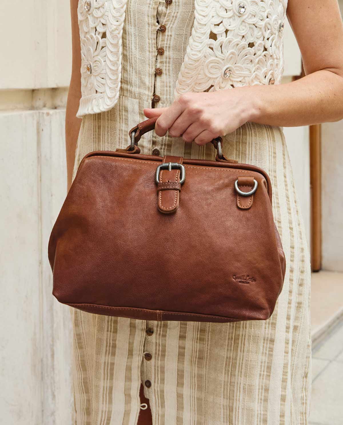 Für Fans klassischer Arzt- und Hebammenkoffer ist „Lillith“ ein absolutes Must-have! Sie interpretiert diesen einzigartigen Look neu und kombiniert ihn mit der Größe einer kompakten Handtasche. So wird das auffällige Vintage-Modell aus Ziegenleder schnell zur idealen Begleitung durch Deinen Alltag – sei es für den schnellen Einkauf, einen Stadtbummel mit Freunden, im Urlaub oder als stylische Ausgehtasche. Inspiriert durch den urbanen Berliner Großstadt Flair vereint „Lillith“ Stil und Funktionalität.