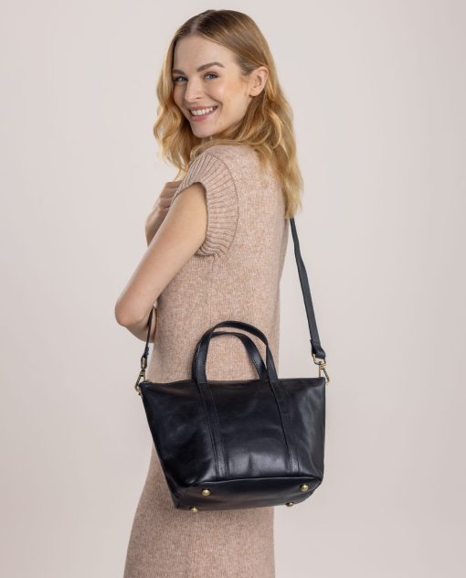 „Magda“ – Schwarze Lederhandtasche für Damen aus pflanzlich gegerbtem Leder!