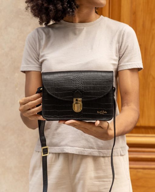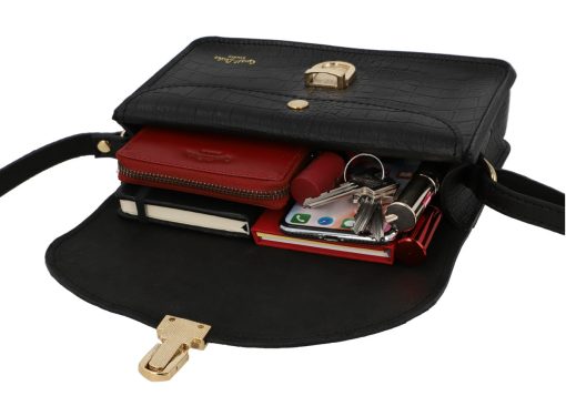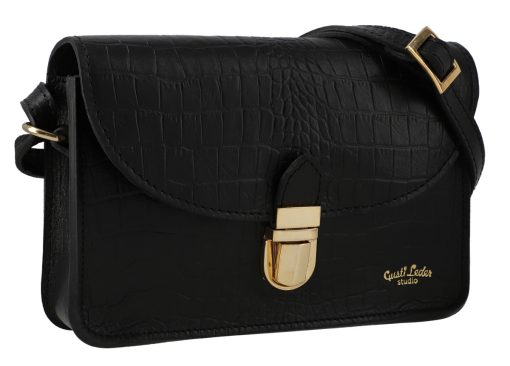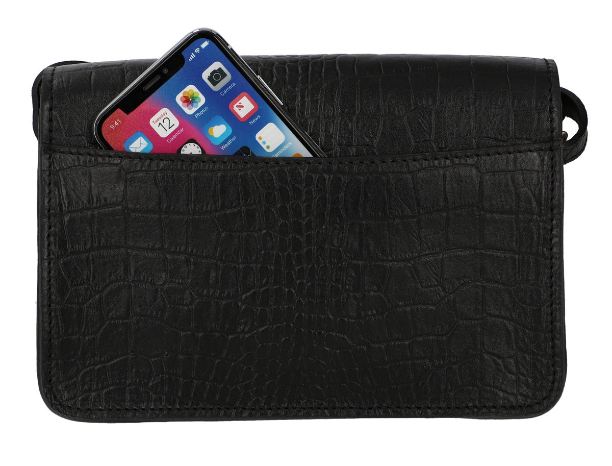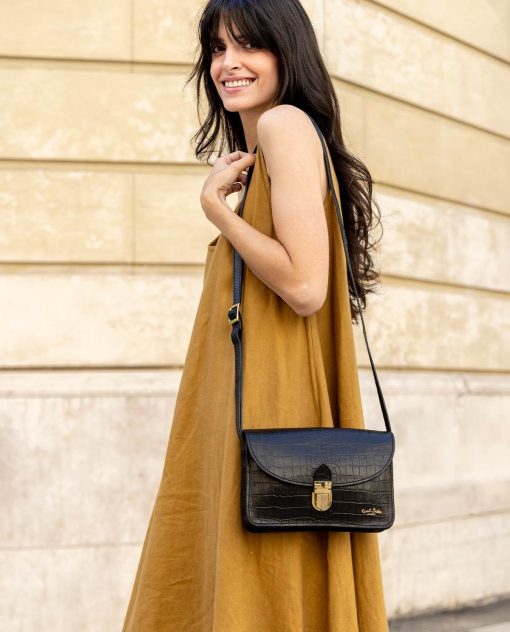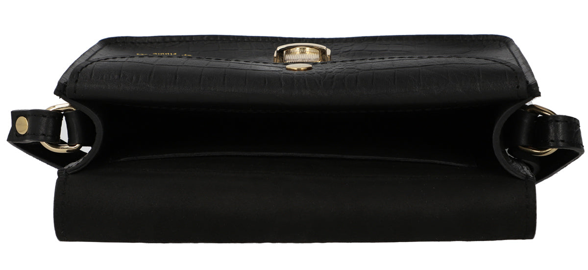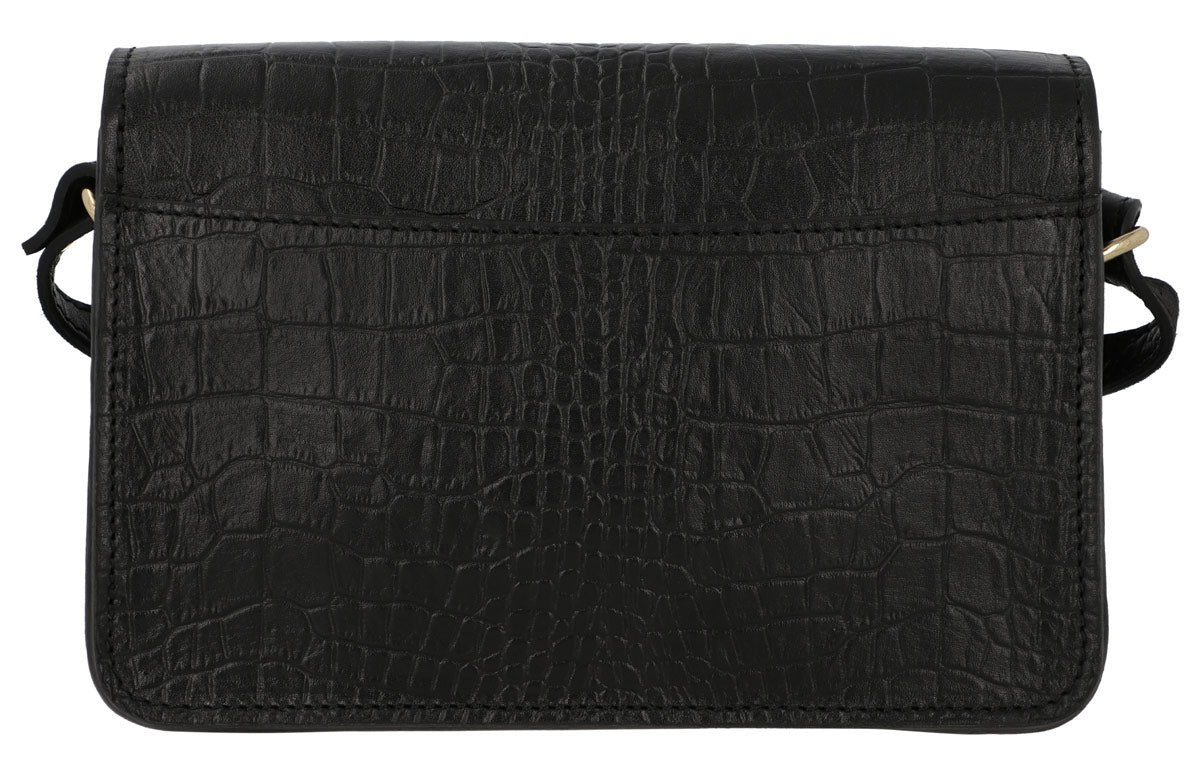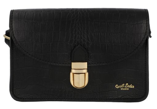 Du suchst nach DER Crossbodybag die die Nacht zum Tag macht? Genauso aber im Alltag jedes Outfit aufwertet? Hier kommt „Sandy“ zur Rettung! Ihre schmale Form macht sie zu idealen Umhängetasche. Die Kroko Optik hebt sich dezent vom tiefschwarz Rindsleder der Tasche ab und besticht mit Stil durch ihren Pop of color in Form der dezenten Gold Applikationen.