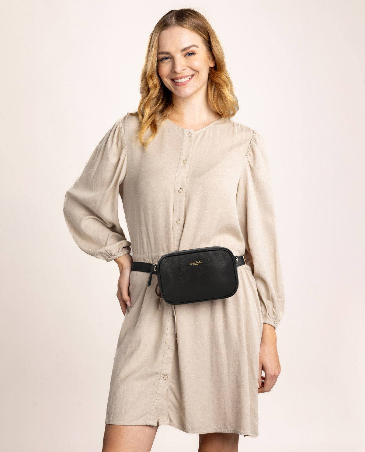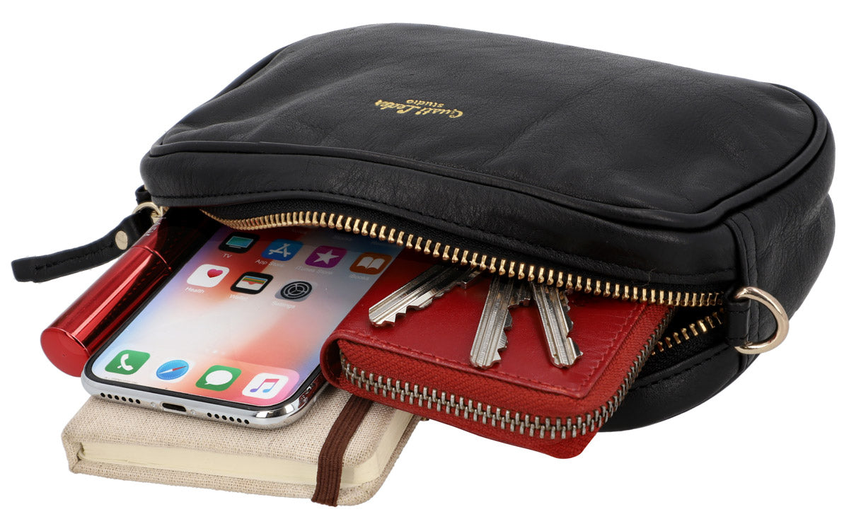 Gefertigt aus aus hochwertigem echtem Leder verfügt „Sophia“ über ein Hauptfach, sodass du den größtmöglichen Platz rausholen kannst – besonders wenn du lediglich das Nötigste dabei haben willst. Hier kannst du bequem Portmonnaie, Make Up, Schlüssel, Handy und Kopfhörer untebringen. Ein Reißverschluss schützt deine 7 Sachen zuverlässig und verhindert ein Herauspurzeln.Die Tragerienen kannst du per Karabiner an „Sophia“ befestigen. Die beiden Schlaufen auf der Rückseite erlauben es „Sophia“ an deinem Gürtel zu befestigen. Genieße die Freiheit der Wahl – mit „Sophia“!