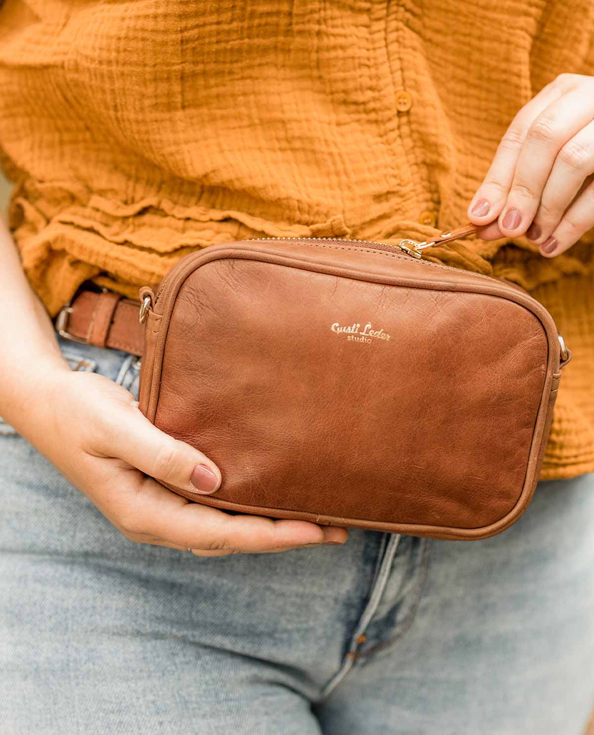 Wenn du nach einer kompakten und modernen Alltagstasche suchst, wird „Sophia“ garantiert dein neuer Lederliebling werden. Im trendy modernen und jugendlichem Design verbunden mit der nötigen Funktionalität und Stabilität wird sie prompt zur praktischen Begleiterin und zugleich individuell dein persönliches Outfit komplementiert. Aber das ist noch nicht alles! Neben Umhängetasche kannst du „Sophia“ auch ganz bequem an deinem Gürtel anbringen, welches sie zur idealen Festivalbegleitung macht.